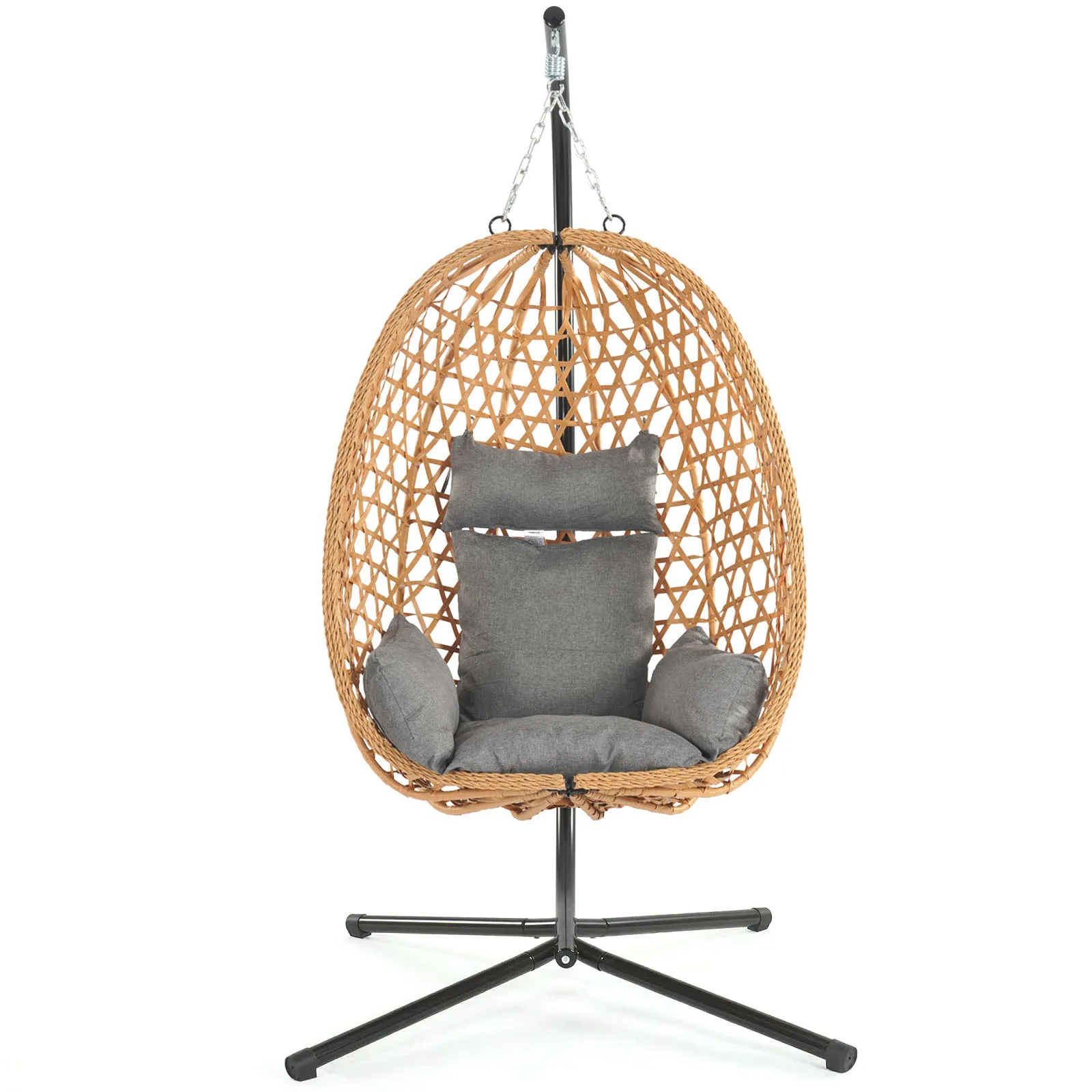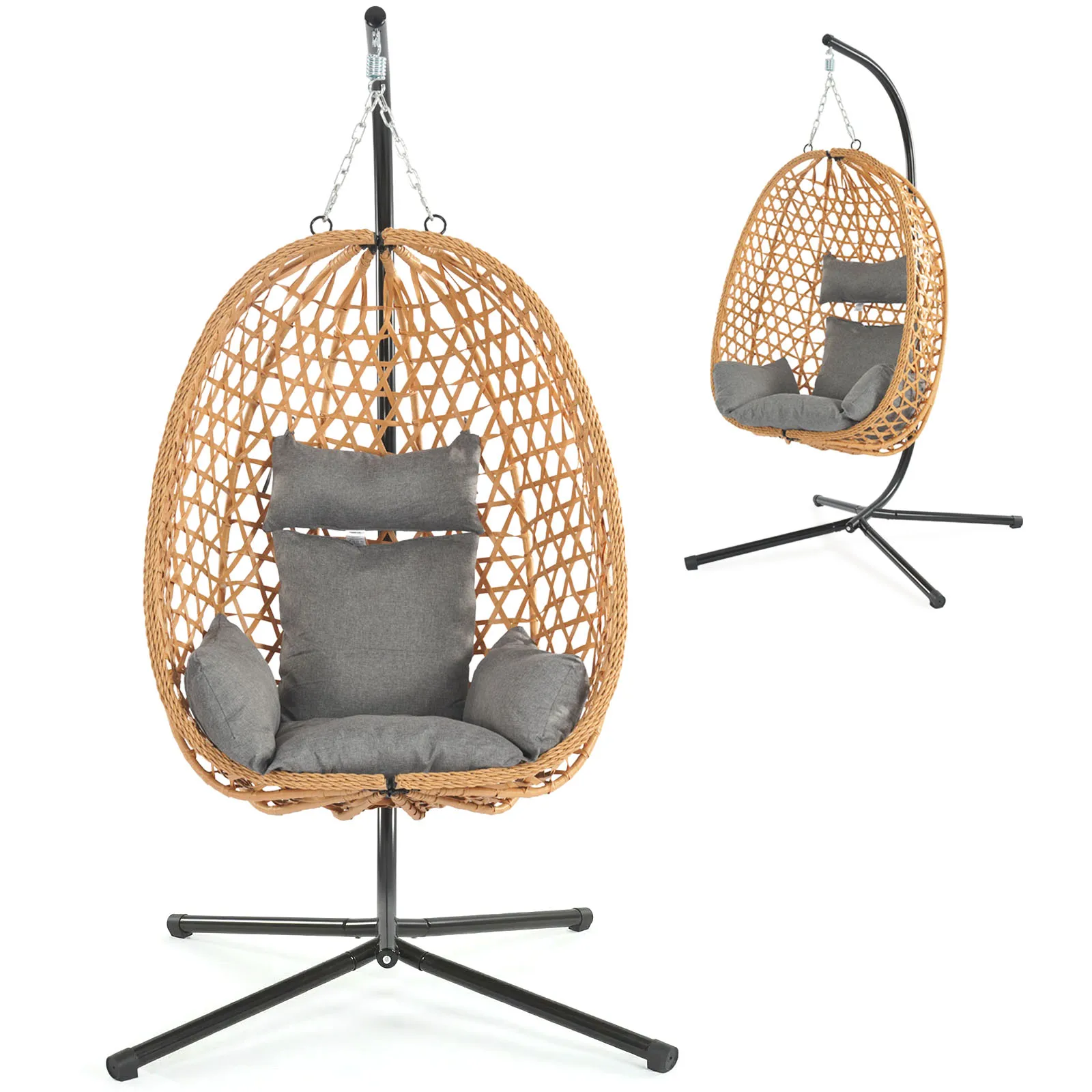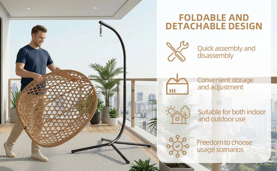 Foldable Egg Chair Rattan Wicker Hanging Swing Chair with Stand Indoor Outdoor Garden Patio Porch Bedroom Lounge Furniture