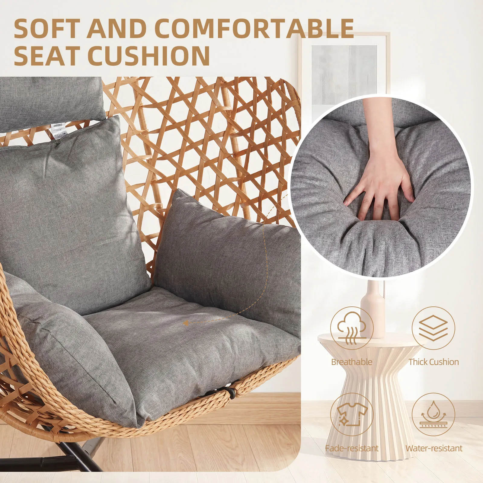 –WEATHER-RESISTANT & DURABLE BUILD – Made with a strong powder-coated steel frame and handwoven PE rattan. This outdoor egg chair is designed to resist rain, rust, and wear throughout the seasons.