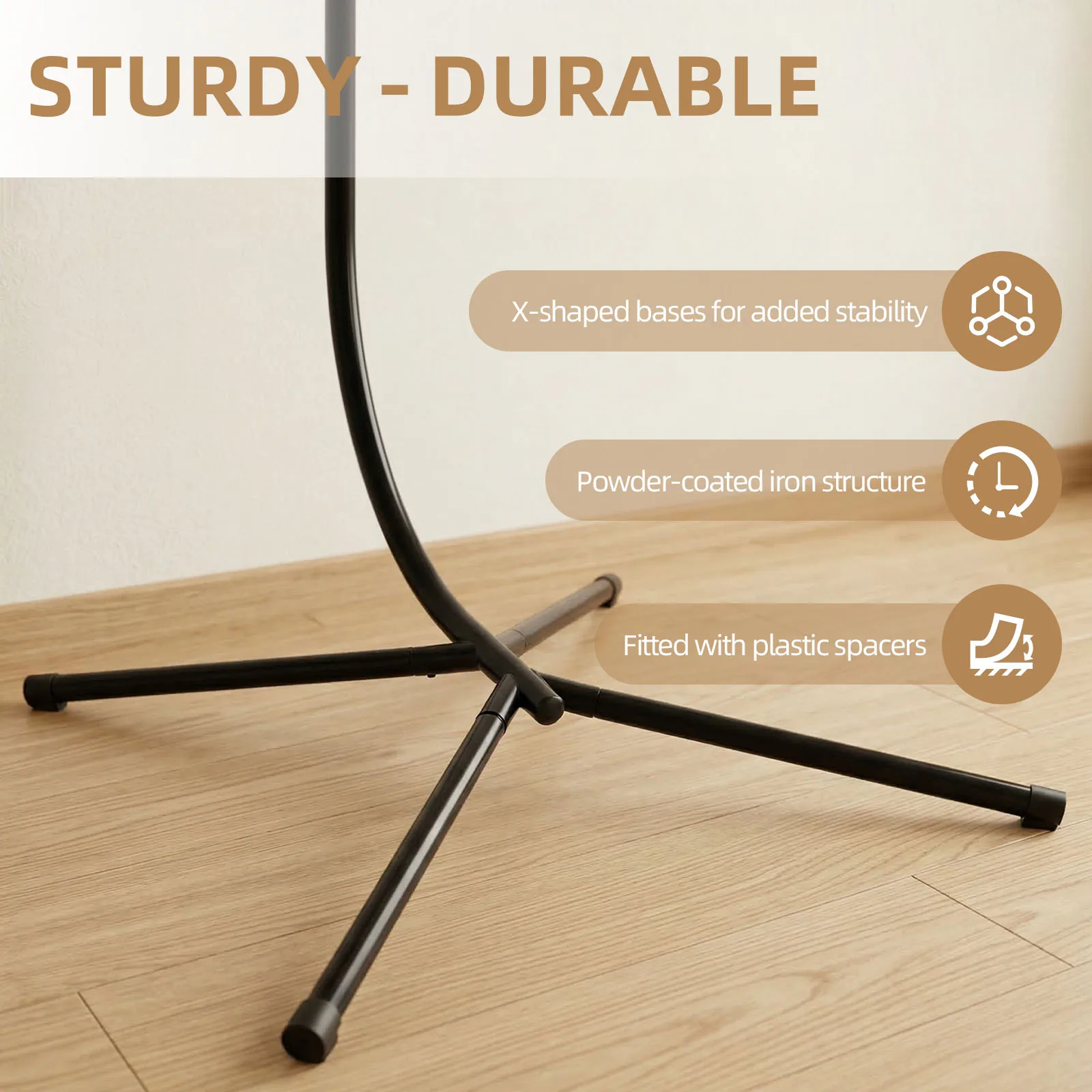 X-shaped bases for added stability – Powder-coated iron structure – Fitted with plastic spacers