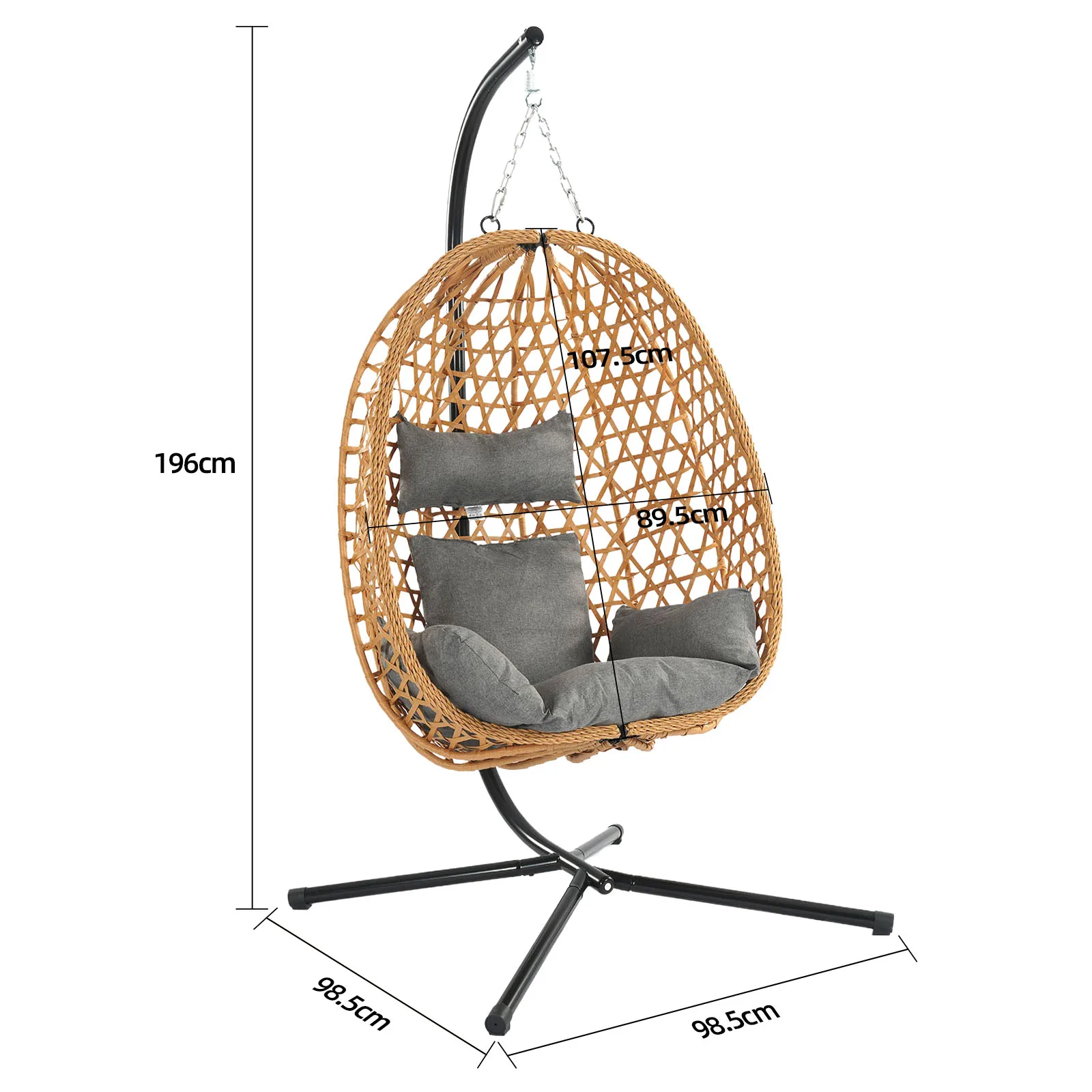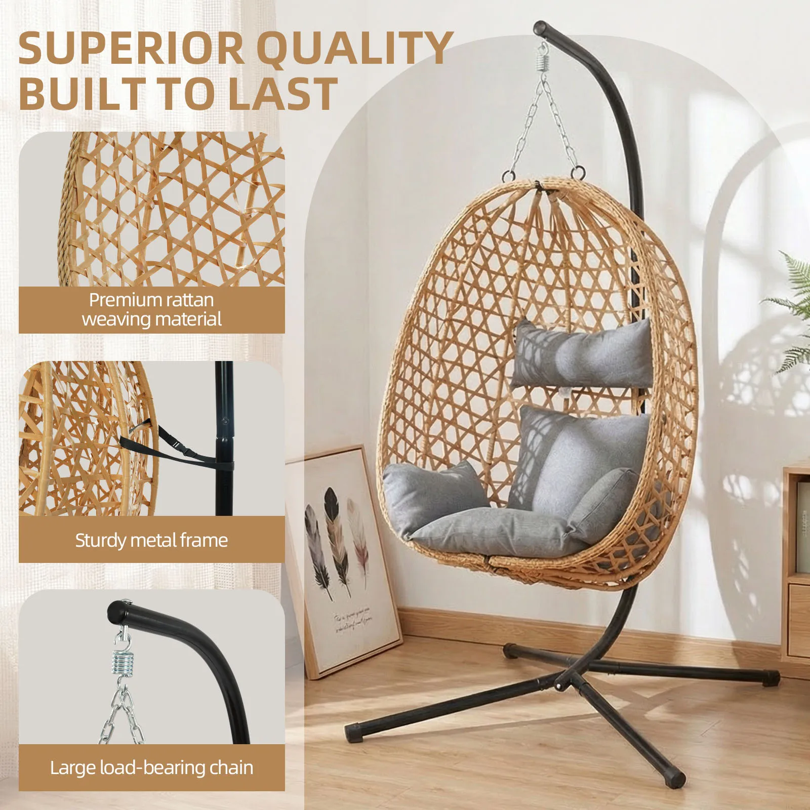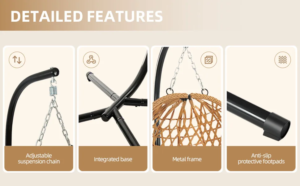 Premium rattan weaving material – Sturdy metal frame – Large load-bearing chain