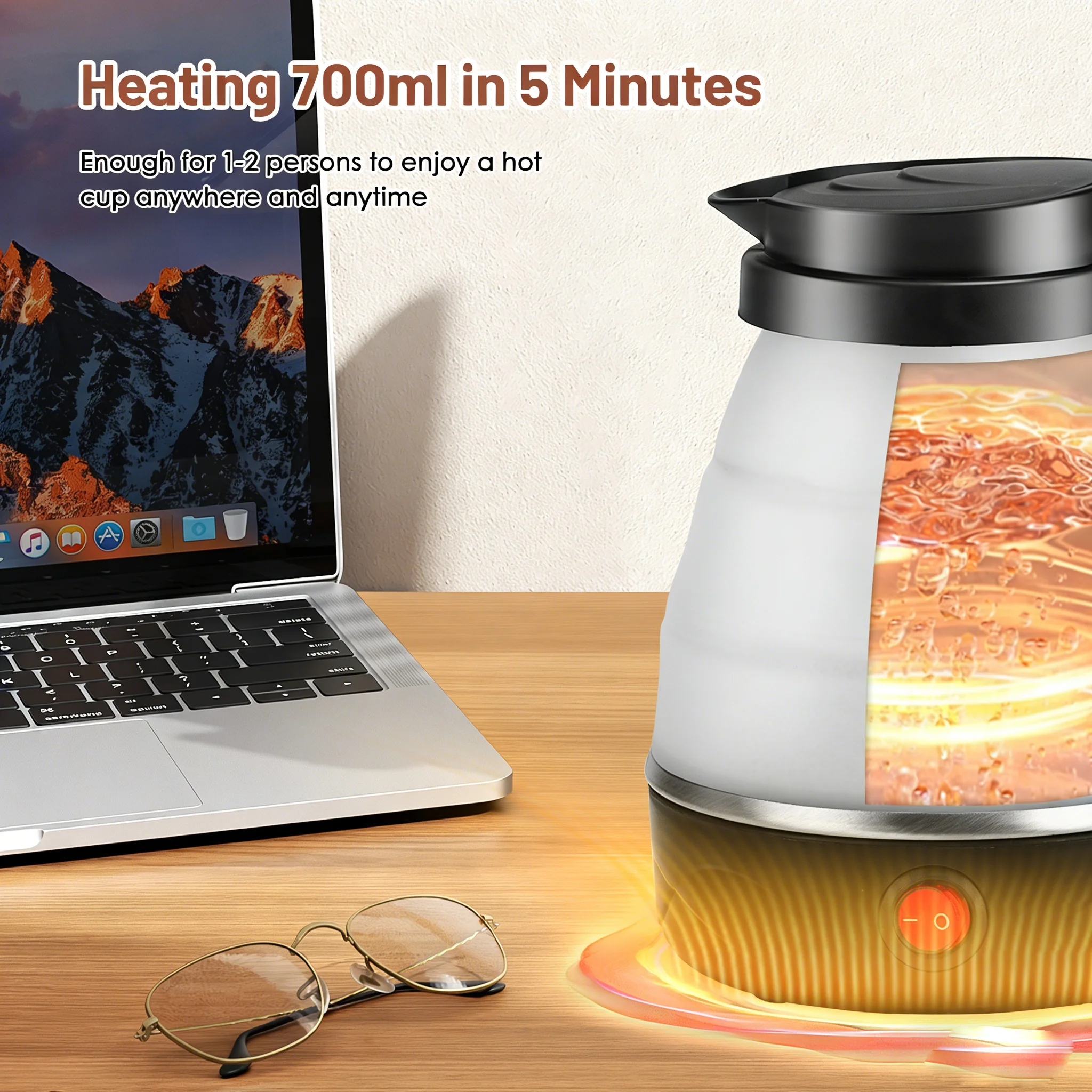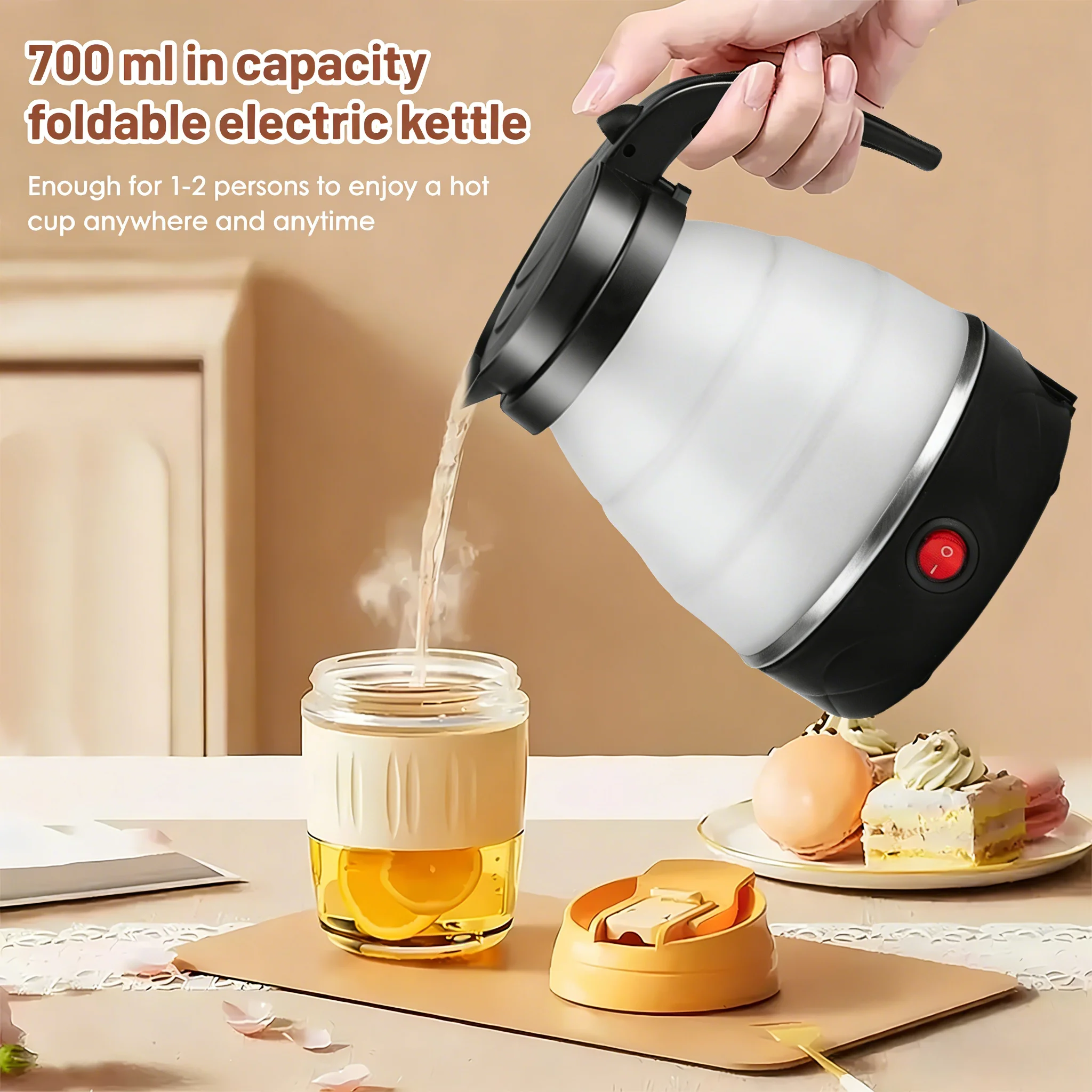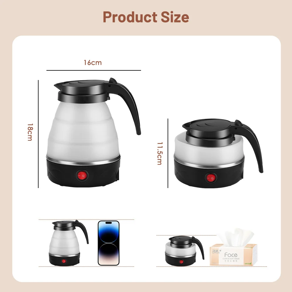 Foldable Kettle-700ML Foldable Travel Kettle, Collapsible Water Bottle, Portable Hot Water Kettle Kettle Perfect for Home, hotel quantity