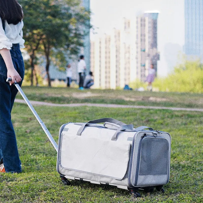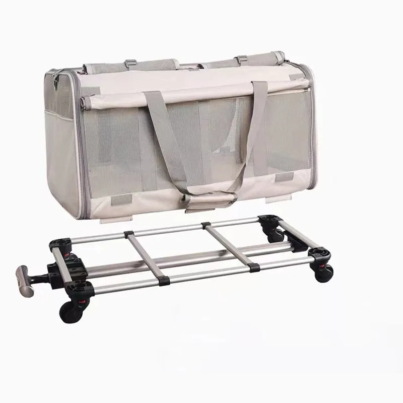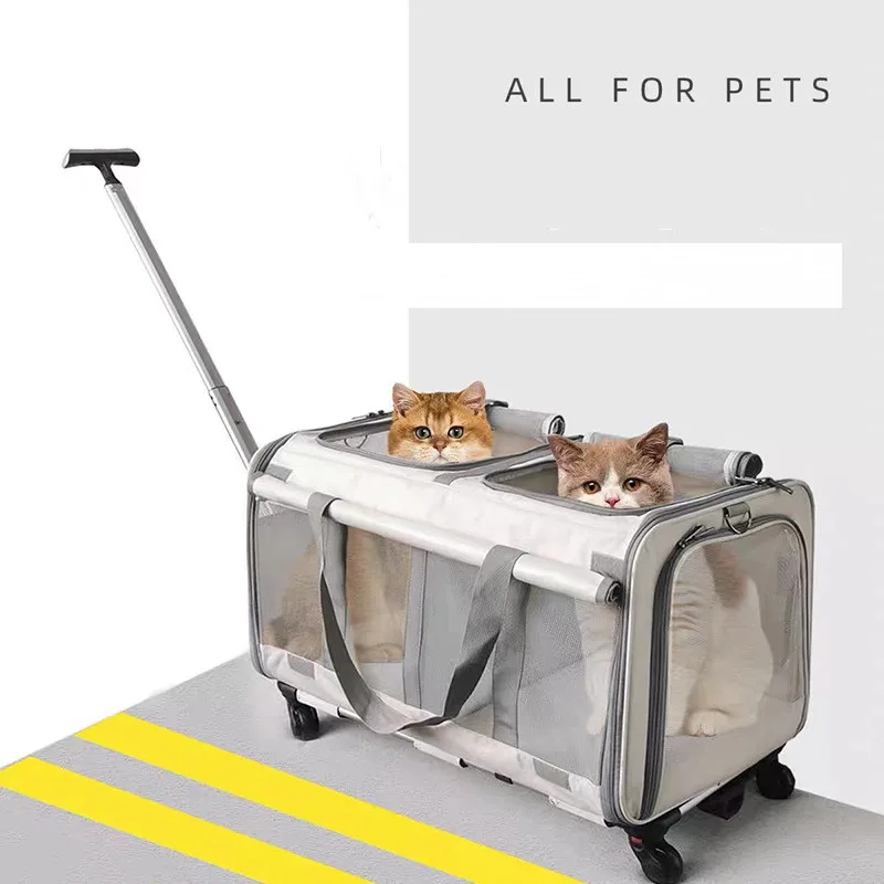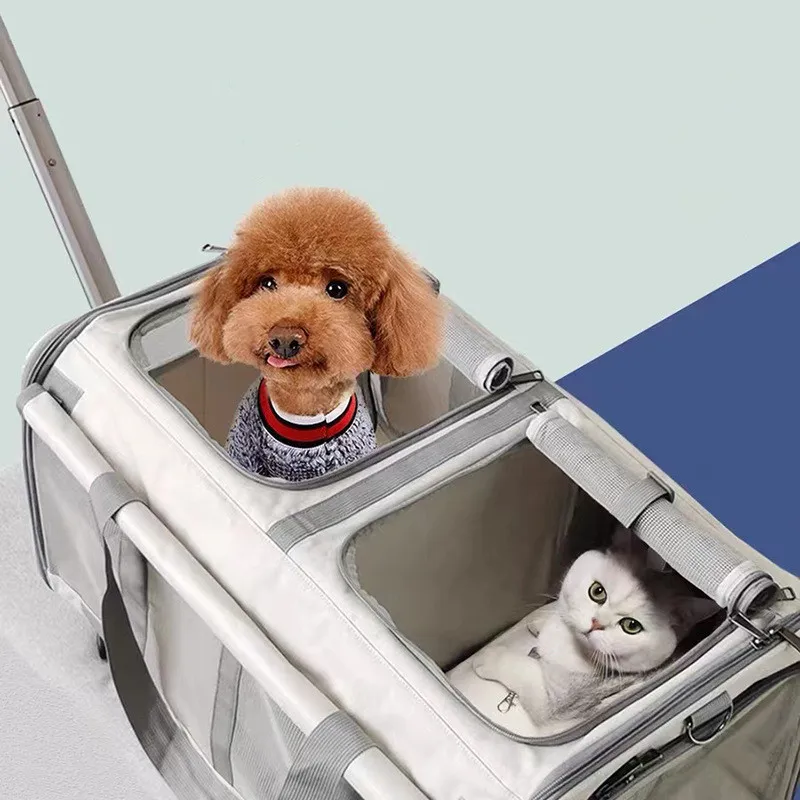 Foldable Pet Trolley Case Large Double-layer Portable Breathable Dog Carrier Bags for Small Dogs Cat Carrier Bearing Weight 15kg