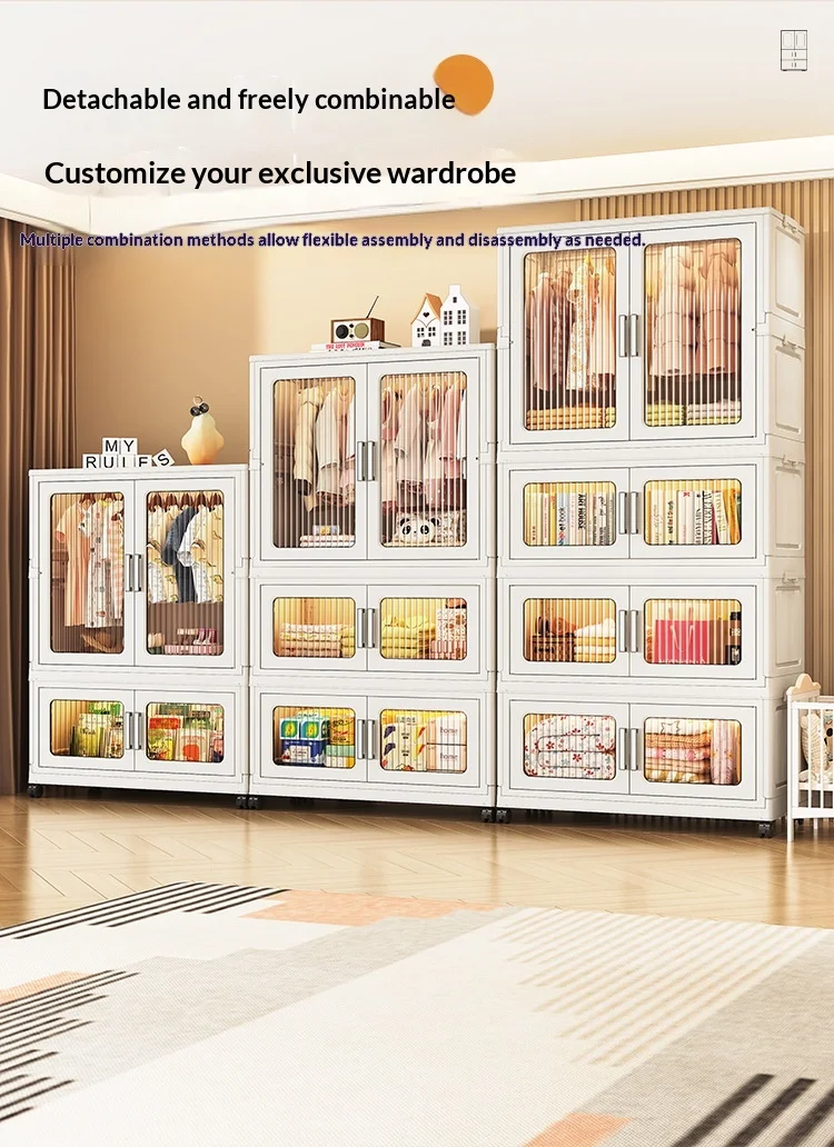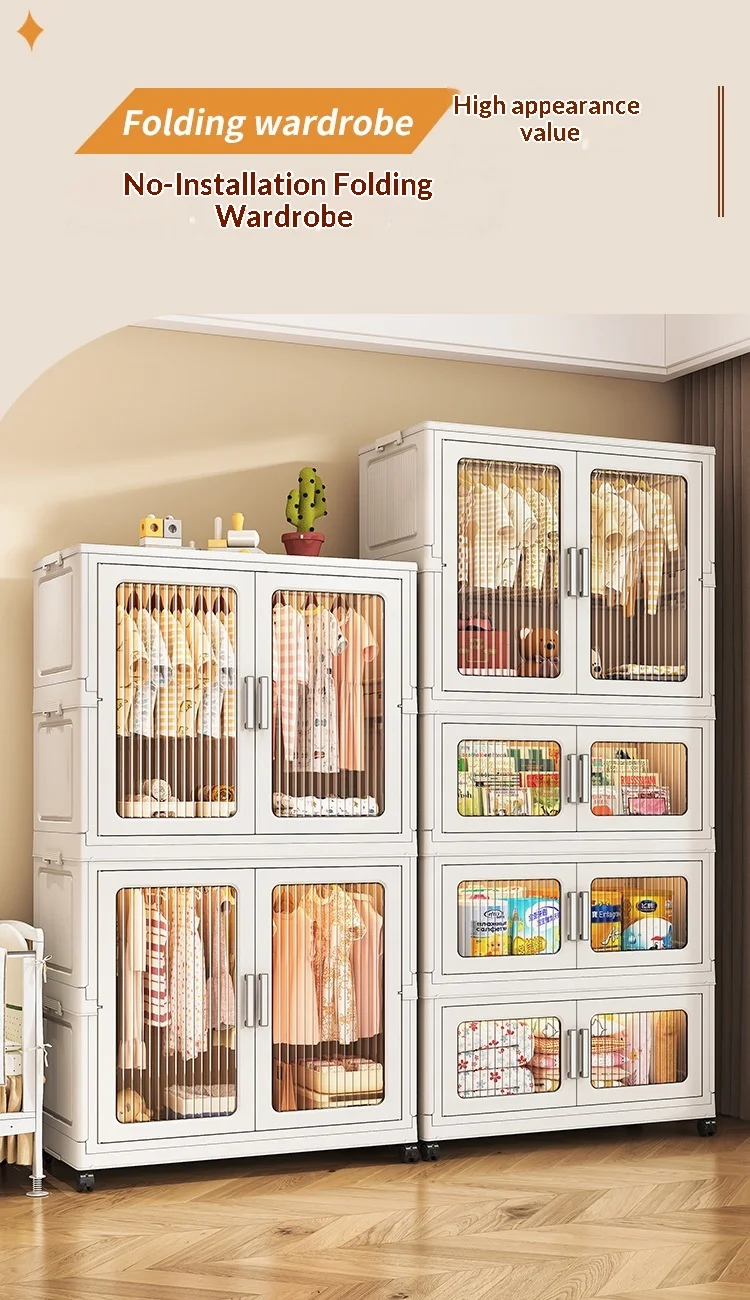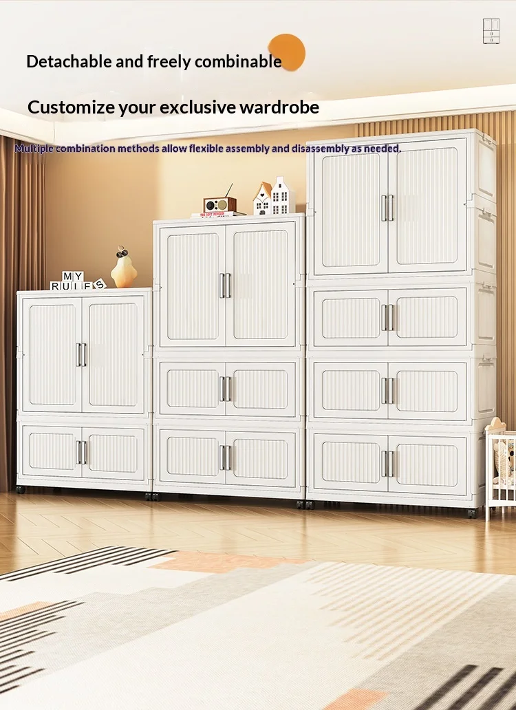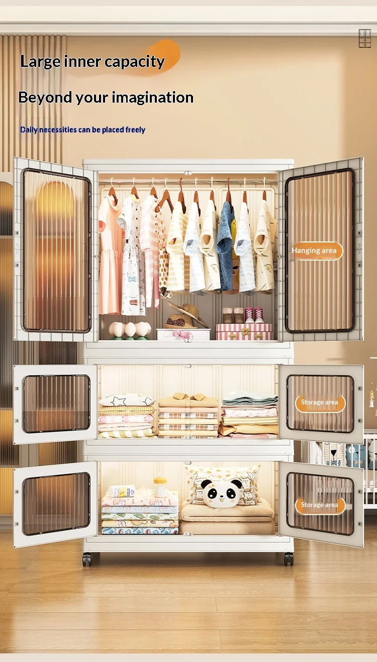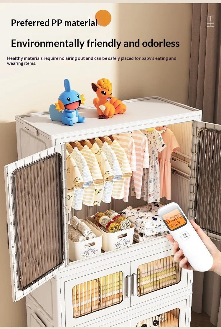 Foldable Plastic Kids Wardrobe Closet Portable Clothes Storage Cabinet Baby Nursery Organizer Space Saving Easy Assembly