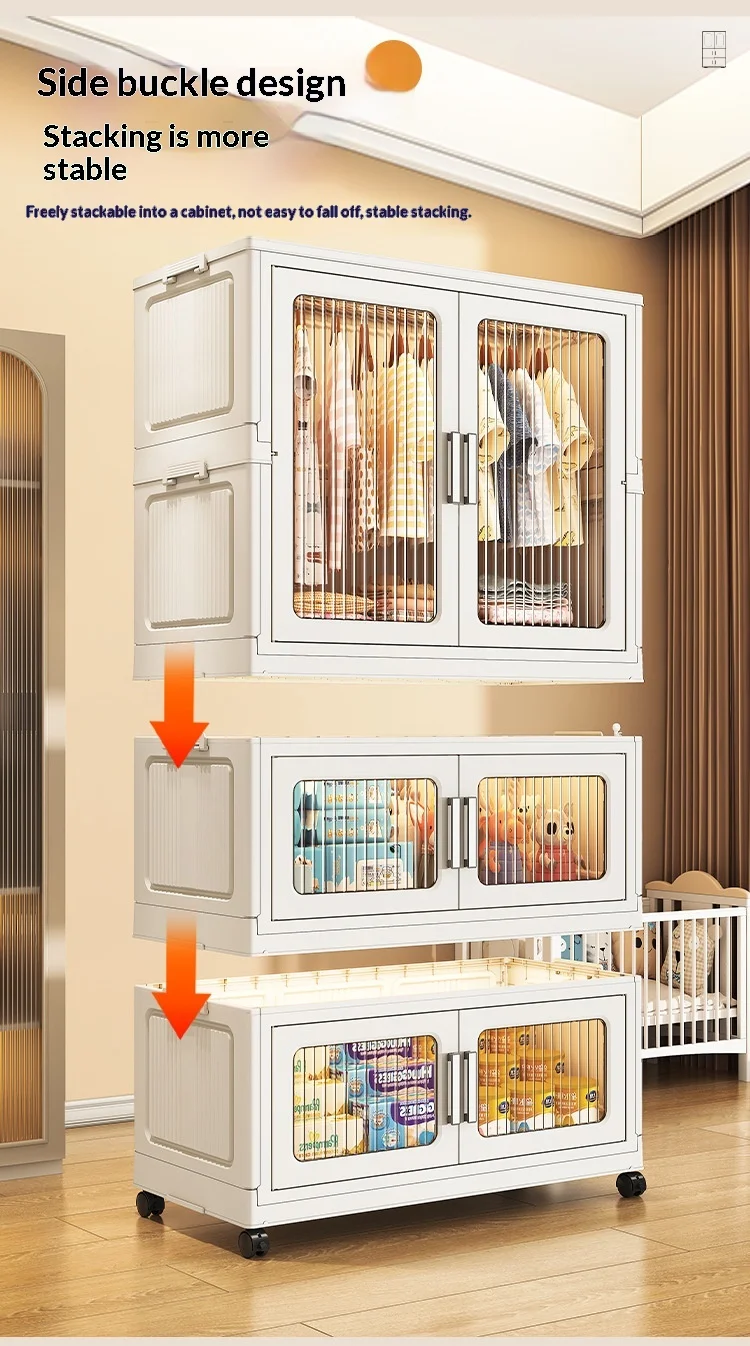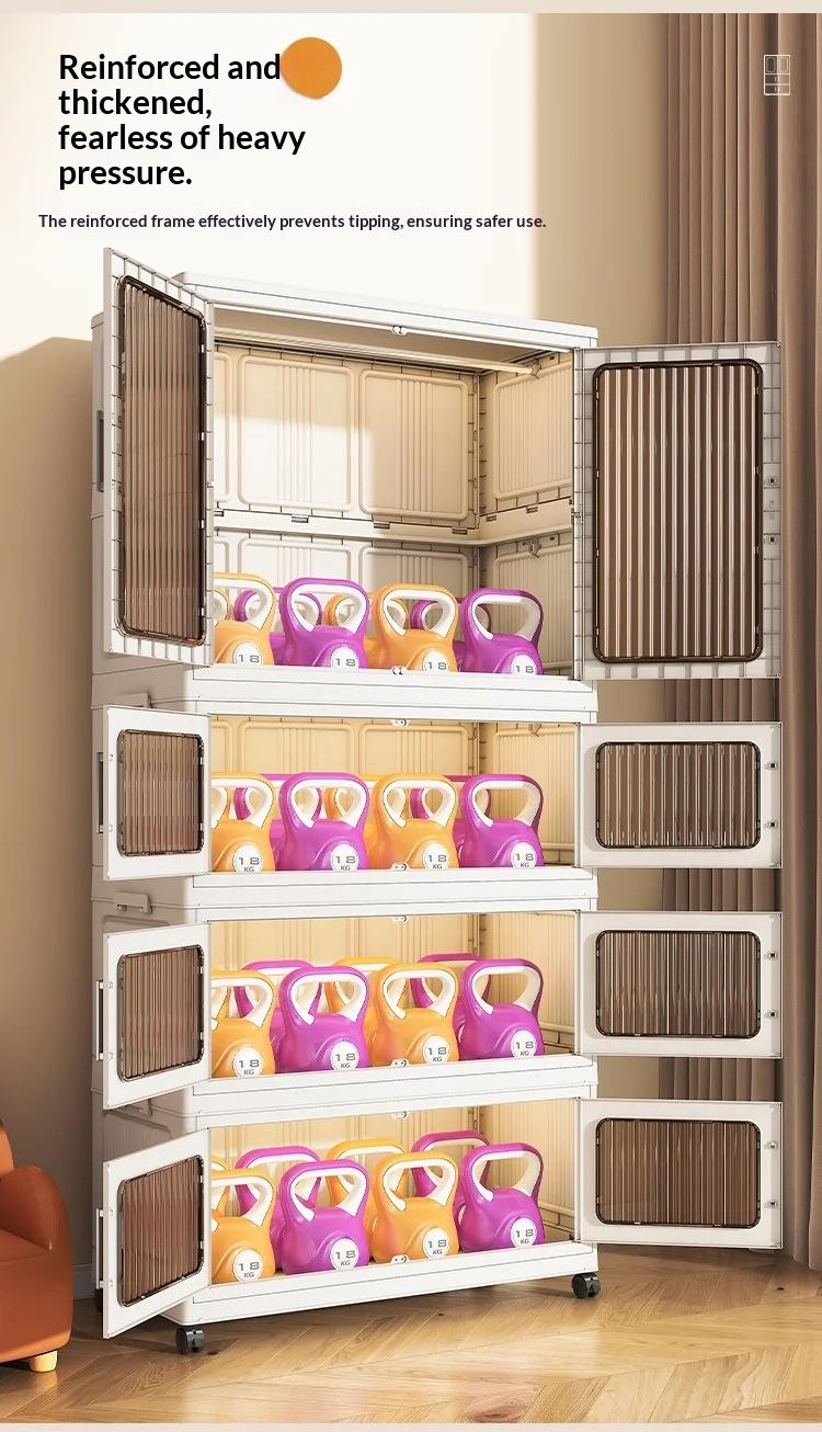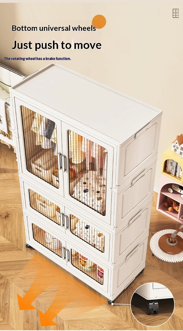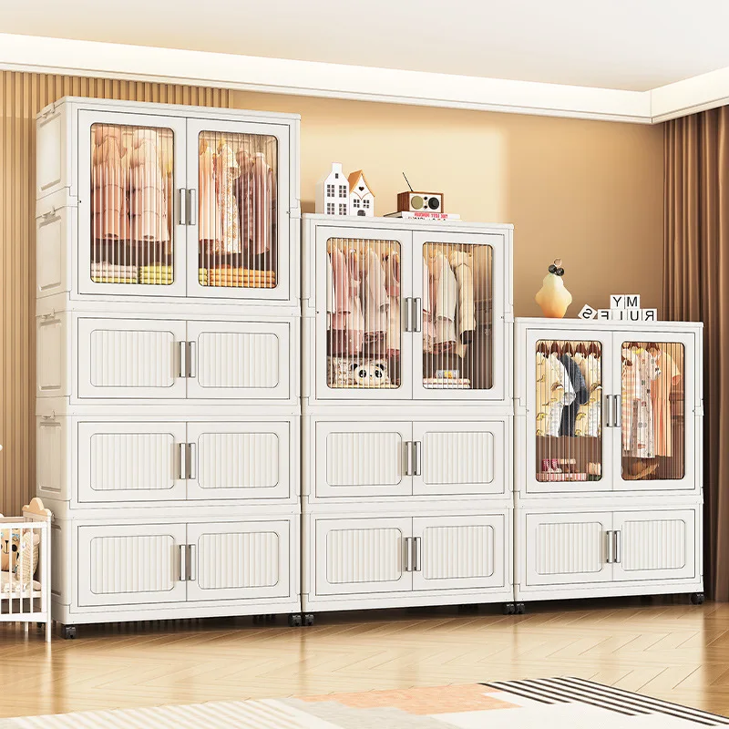Foldable Plastic Kids Wardrobe Closet Portable Clothes Storage Cabinet Baby Nursery Organizer Space Saving Easy Assembly