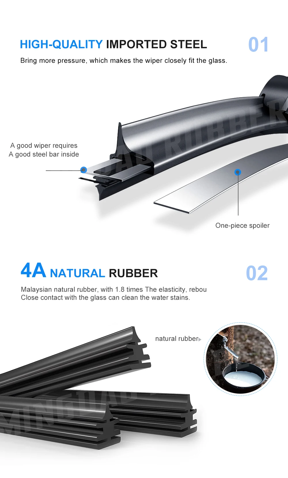 The combination of high-quality materials enables the wiper to be closely attached to the glass, giving you a clearer line of sight and ensuring driving safety.