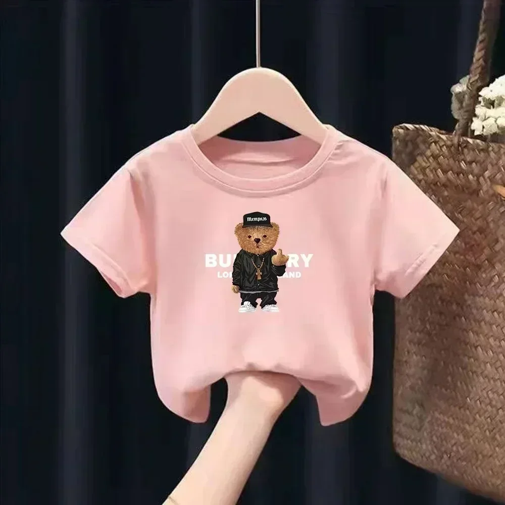 Funny Bear Fashion Print Brand Kid T-shirts Children Baby Short Sleeve Harajuk Tees Boy Girl Kawaii Tops Gift Summer Clothing