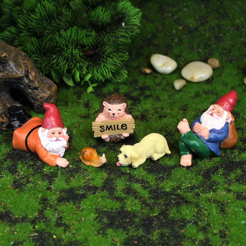 Funny Lying Gnome Statues Resin Mini Fairy Garden Dwarf Dog Snail hedgehog DIY Craft Micro Landscape Outdoor Figurine Ornament