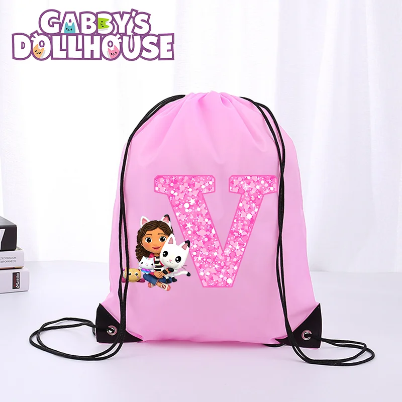 Gabby Dollhouse Drawstring Bag Girls Pink Rope Bags Swimming Pool Clothes Portable Storage Waterproof Backpack Children Gifts