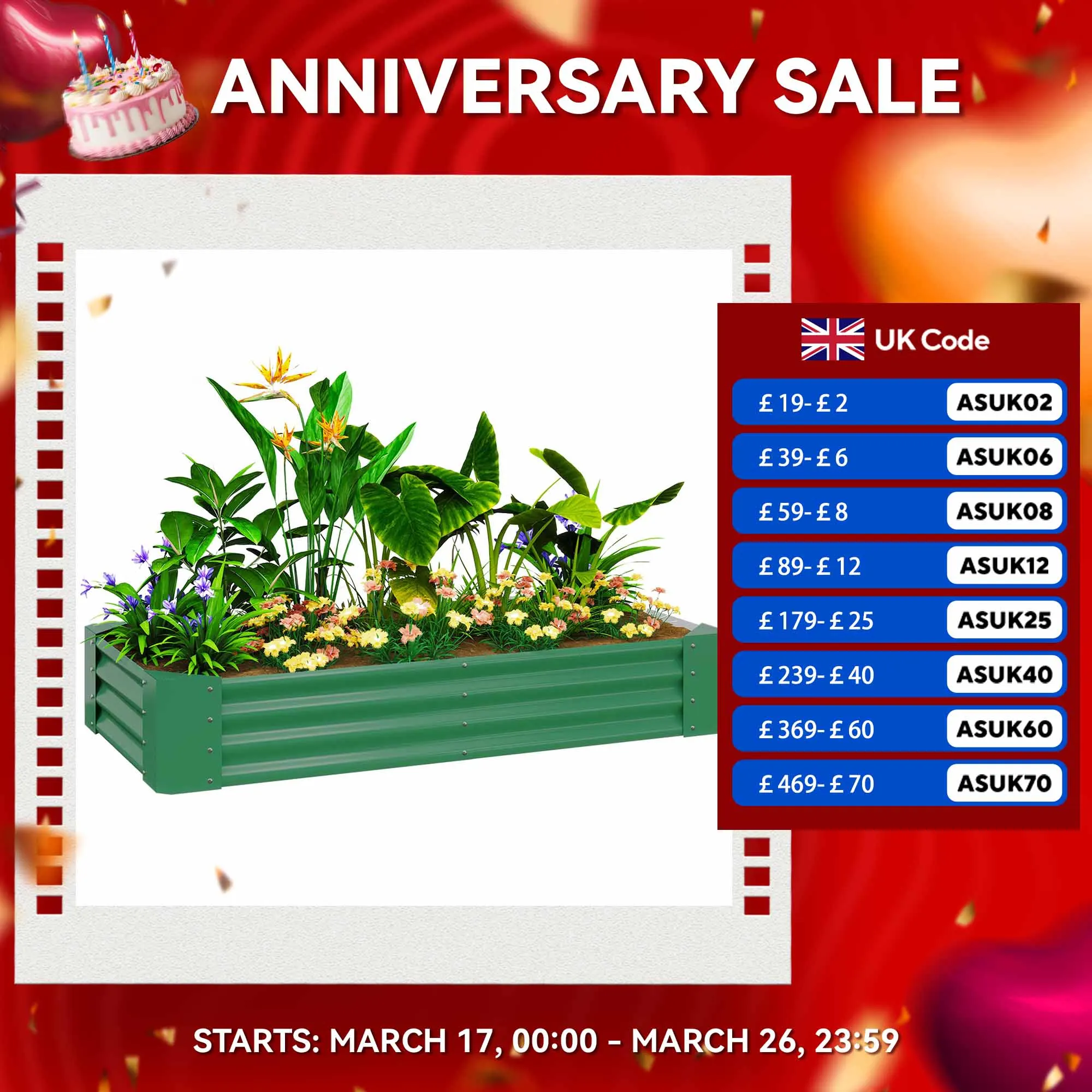 This Outsunny vegetable planter boasts is 30cm deep and holds up to 459 L of soil – plenty of room to grow flowers, vegetables and other plants. A tough galvanised steel structure, with a powder coating for extra strength the veg planter offers resistance against rust and weather damage. The open bottom design means direct soil contact for lots of natural growth, without any damaging water build-up.● 180 x 90 cm, with 30cm depth: hold and grow plenty plants, vegetables and flowers