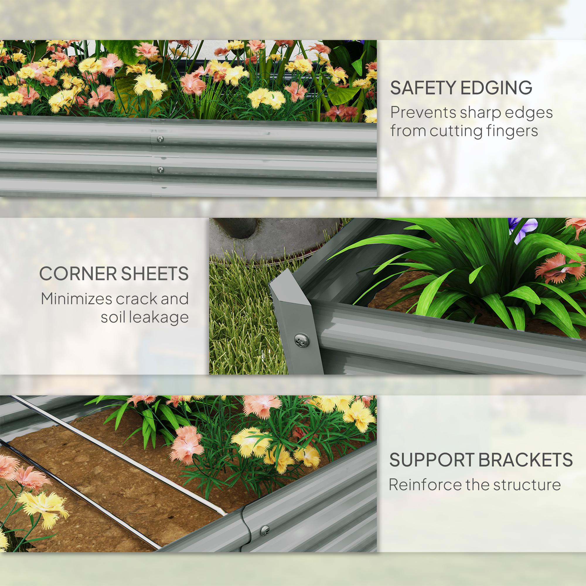 This Outsunny vegetable planter boasts is 30cm deep and holds up to 459 L of soil – plenty of room to grow flowers, vegetables and other plants. A tough galvanised steel structure, with a powder coating for extra strength the veg planter offers resistance against rust and weather damage. The open bottom design means direct soil contact for lots of natural growth, without any damaging water build-up.● 180 x 90 cm, with 30cm depth: hold and grow plenty plants, vegetables and flowers
