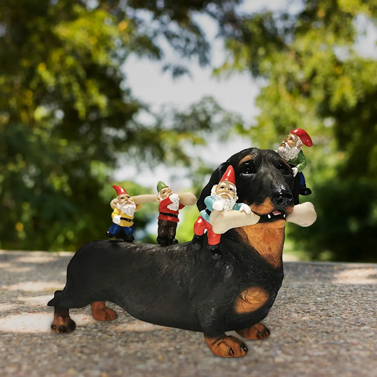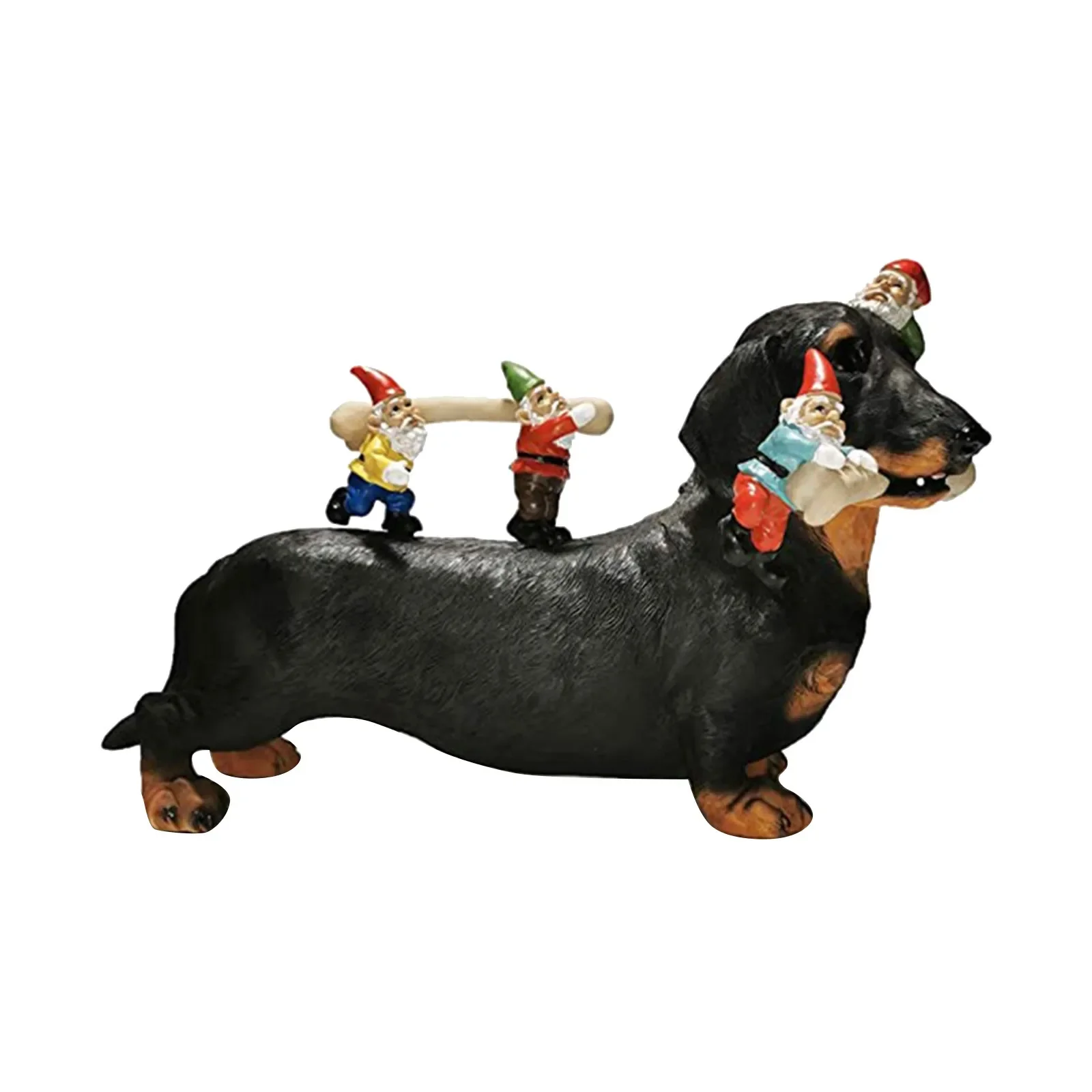 Garden Gnome Statues Outdoor Decor Dachshund Eating Gnomes Garden Ornaments Handicraft Flower Pot Accessories Home Garden Decor