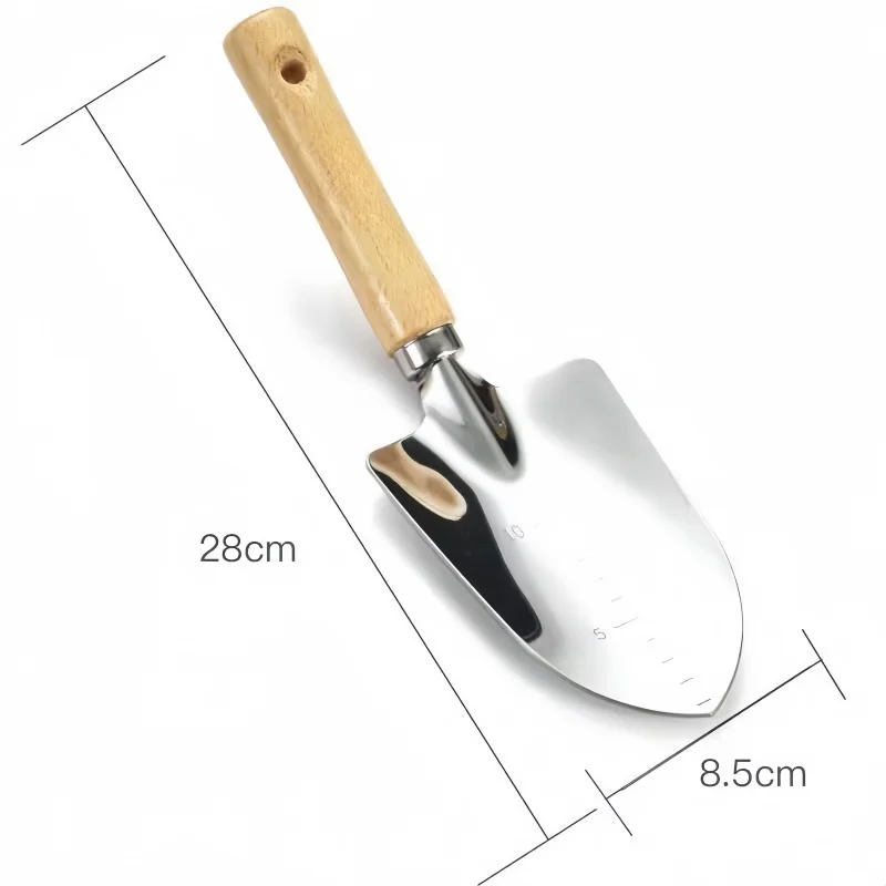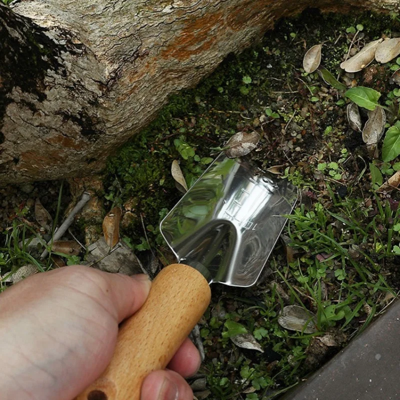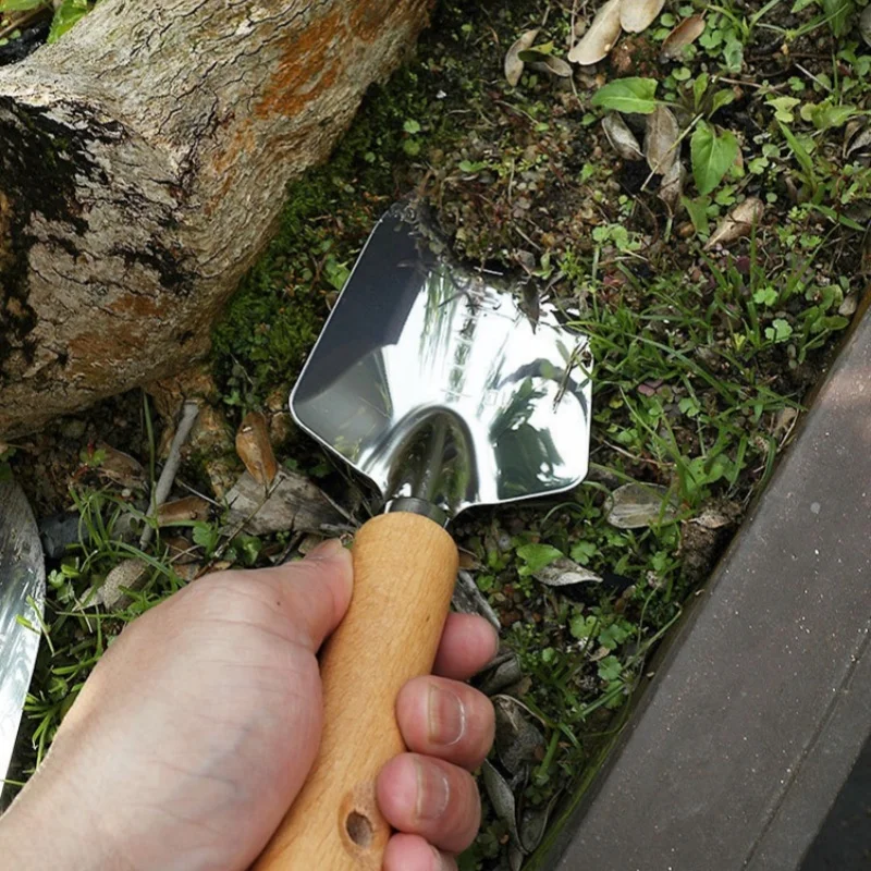 Garden Hand Trowel Heavy Duty Polished Stainless Steel Garden Shovel with Wooden Handle Digging Transplanting Shovel