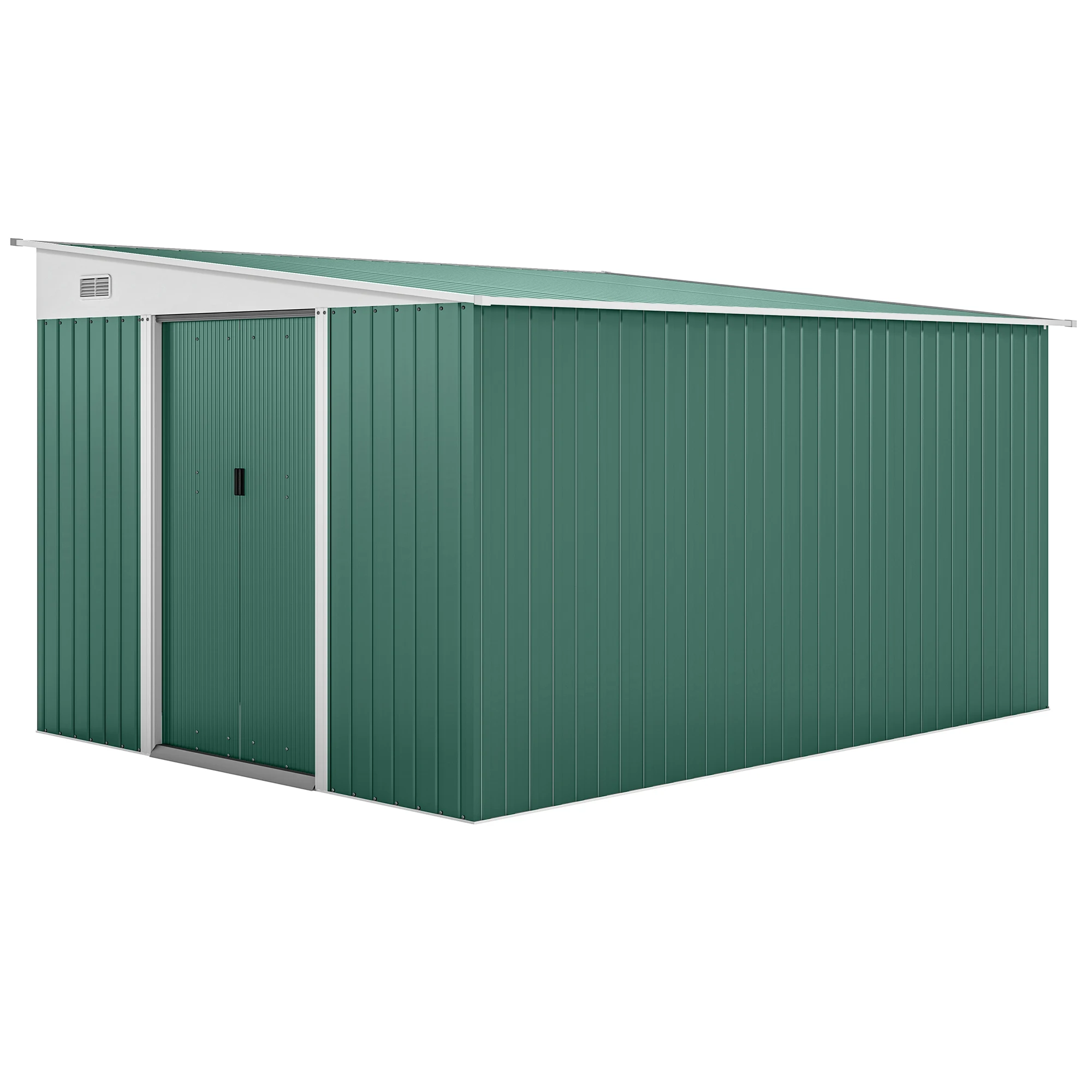 Double sliding doors: Easy to open and close the tool shed. Can be locked for security, requires padlock for security.