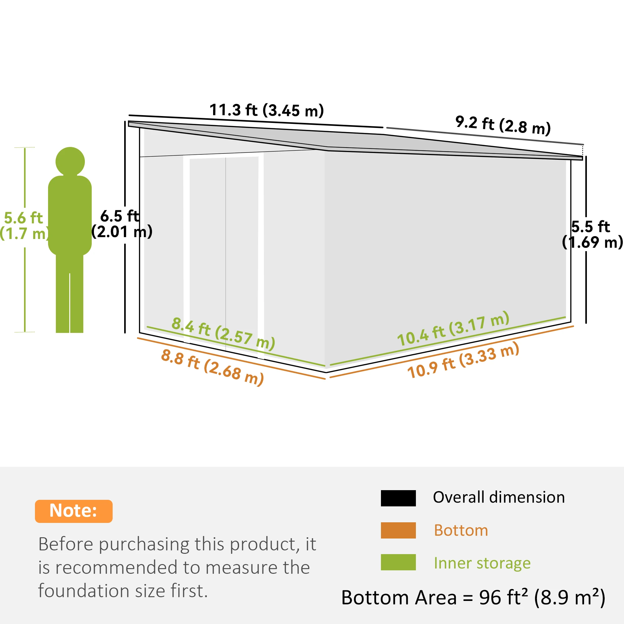 3.3 x 2.68m inner storage: Outdoor storage shed has plenty of open inside room – suitable for garden tools, equipment, bikes and more.