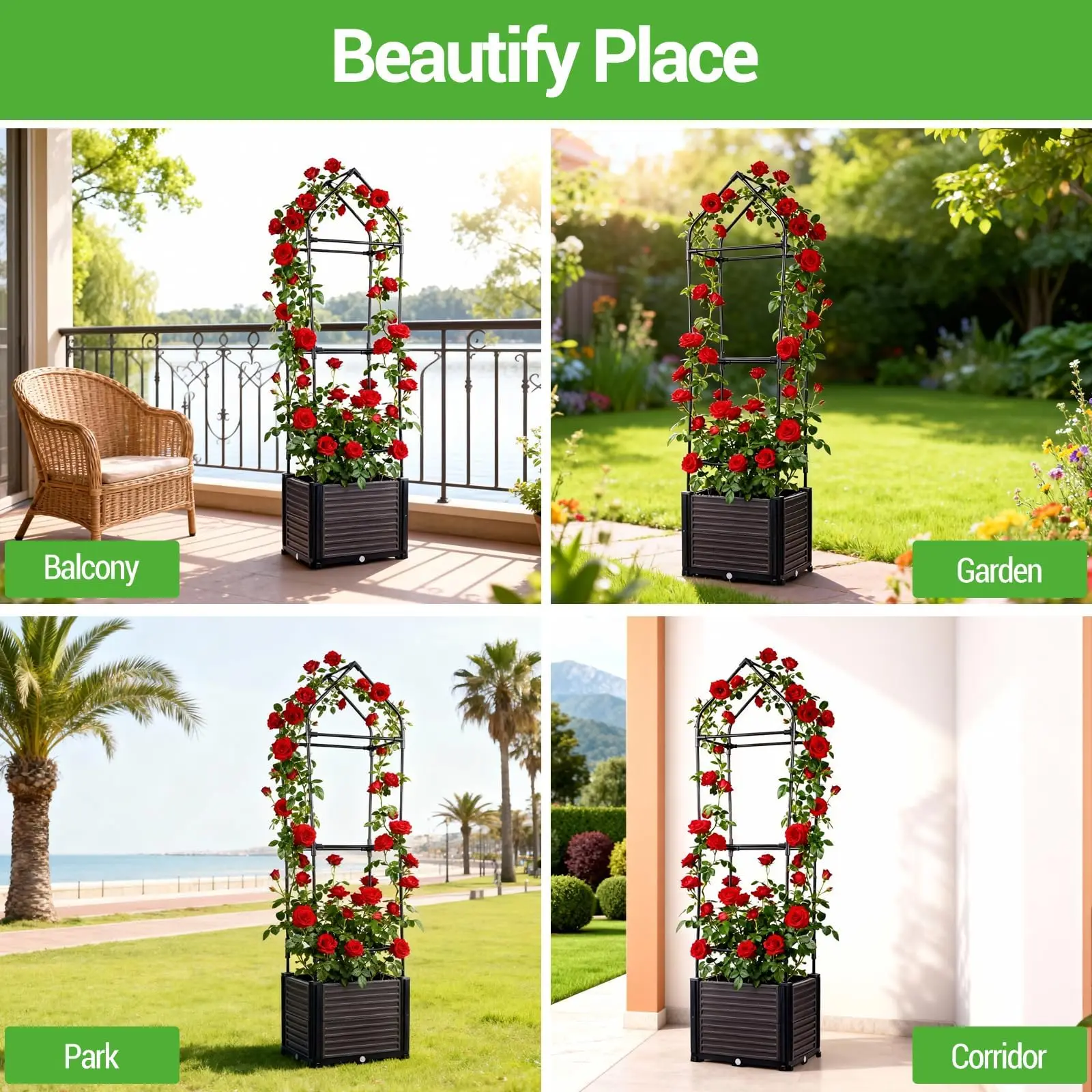 • Trellis for Plant Growth: The garden trellis included provides support for climbing plants, maximizing vertical space, and creating a beautiful garden display. The plant support trellis provides 3 different heights for convenient gardening without bending over, promoting better plant growth and maintenance.