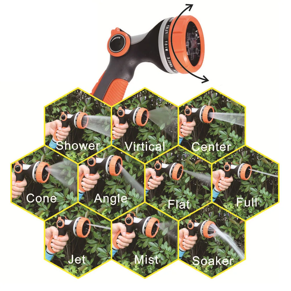 * 10 different water spray modes, not only can water the garden, but also can help you wash your car, floors, balconies, terraces, yards, roads and other dusty places.
