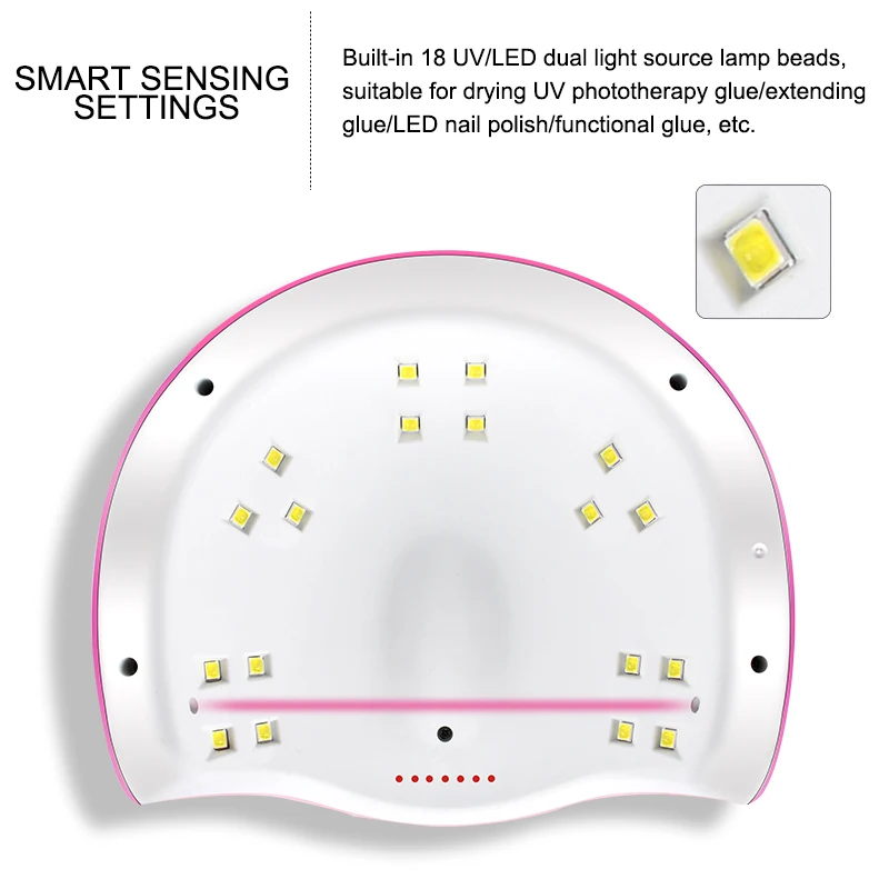 1. Adopting UV/LED dual light source induction, imitating sunlight, not hurting hands, 180 degree uniform irradiation without dead ends, easy nail art.