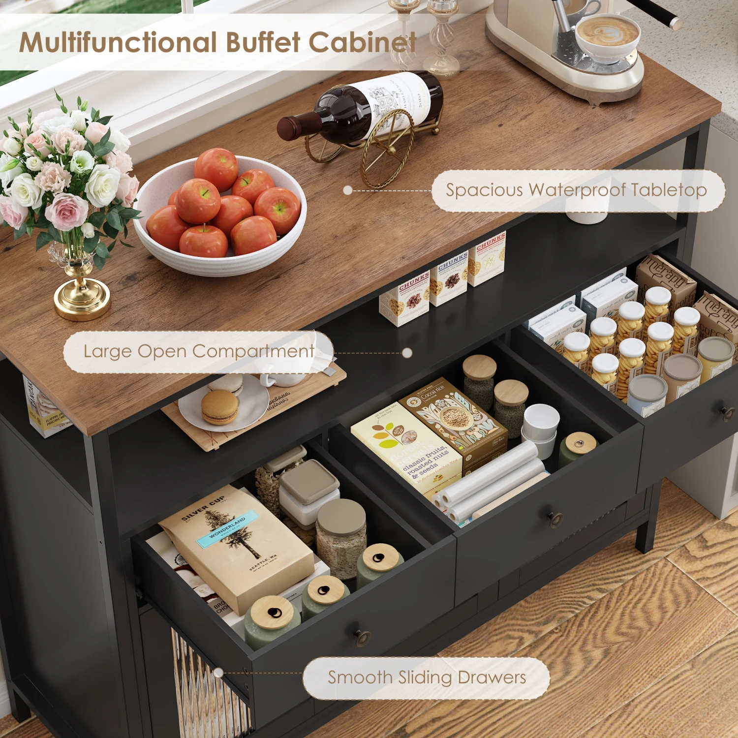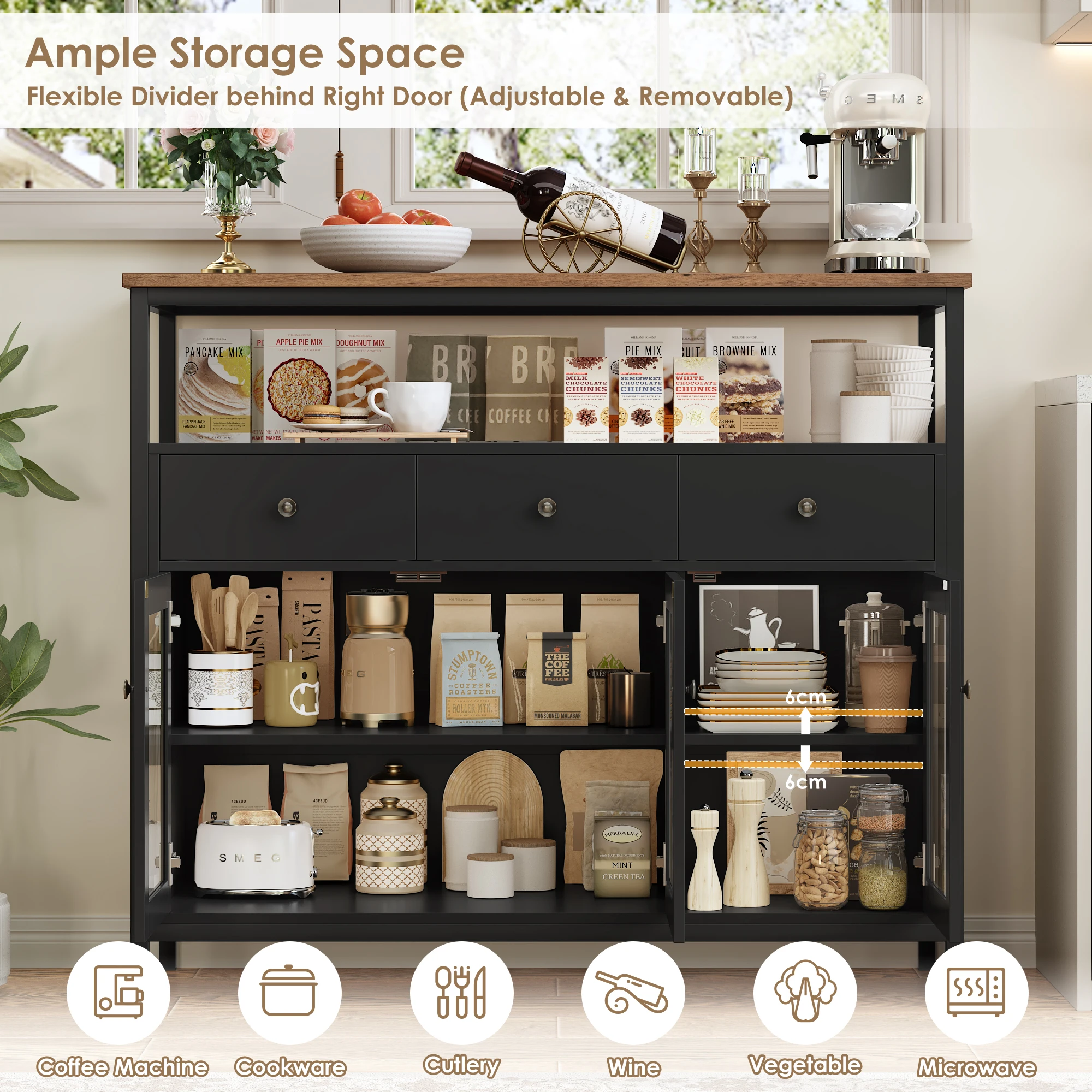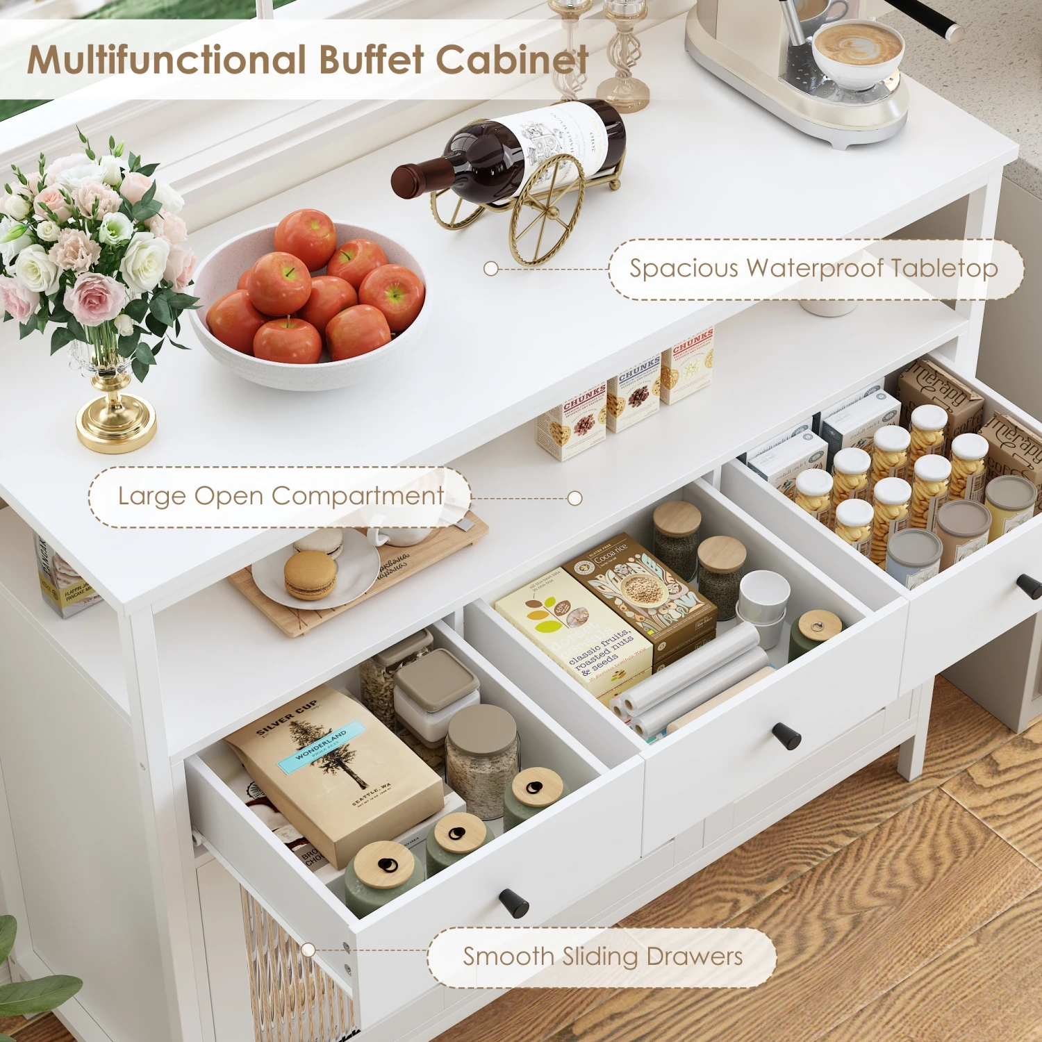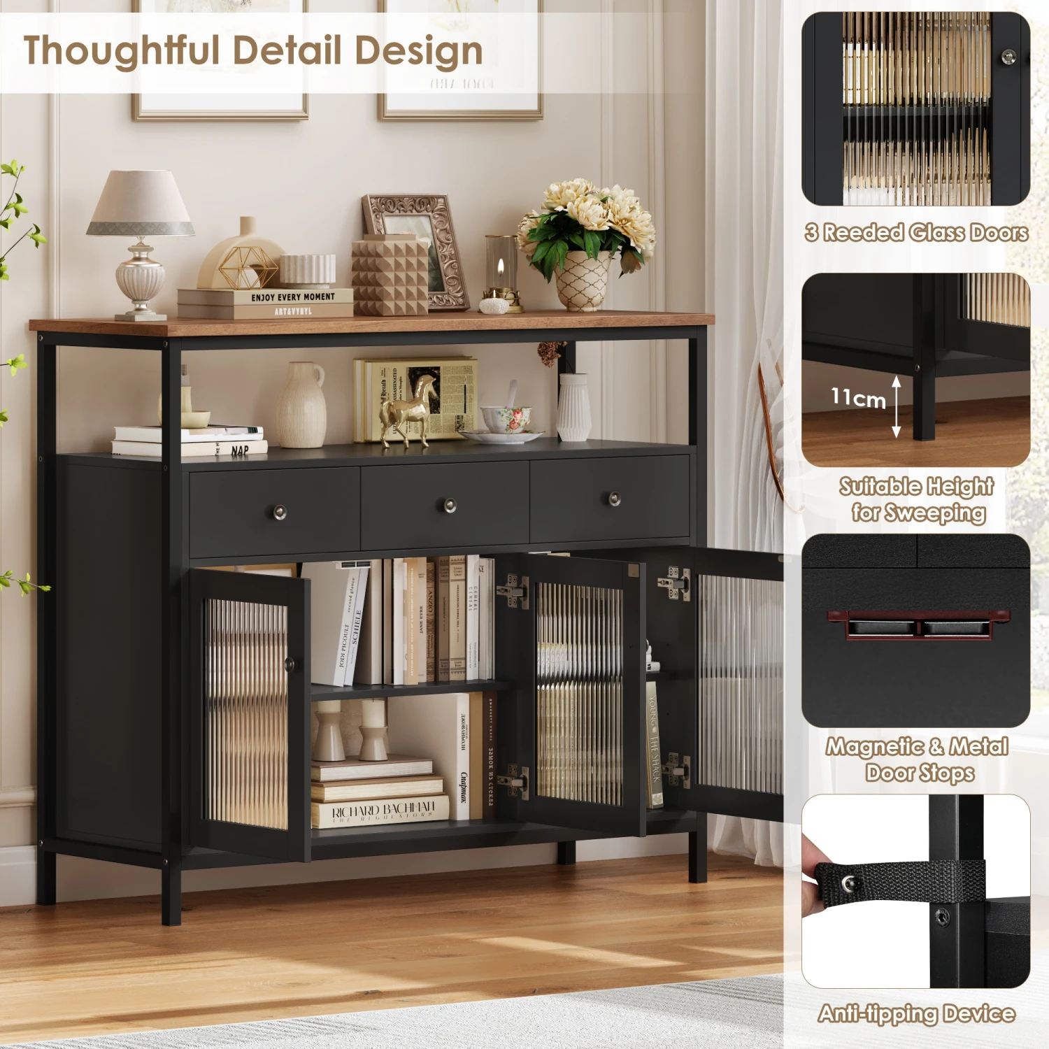 Getone Sideboard Kitchen Storage Cabinet Buffet White Cupboard with Drawers 3 Glass Doors for Living Room 108x38x9