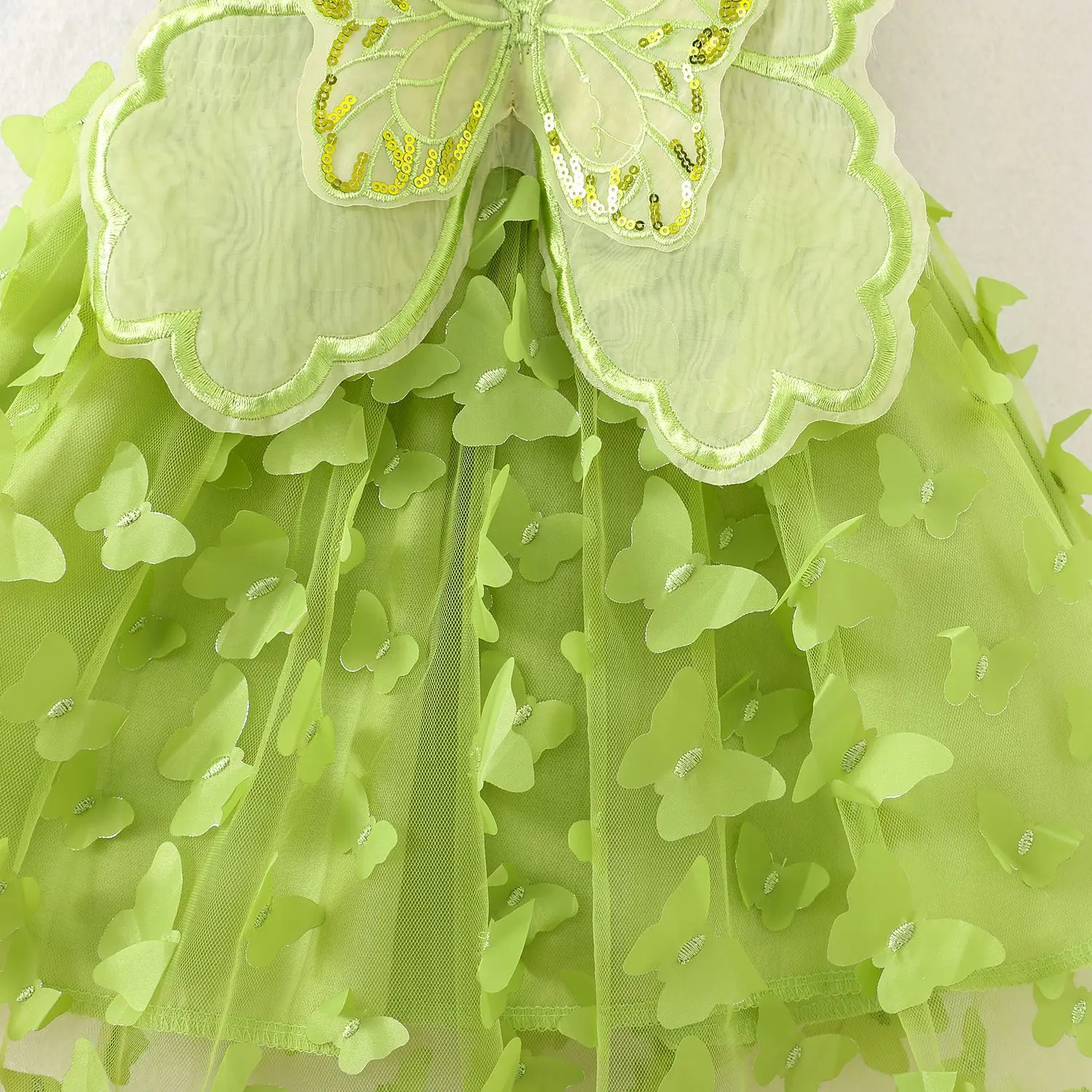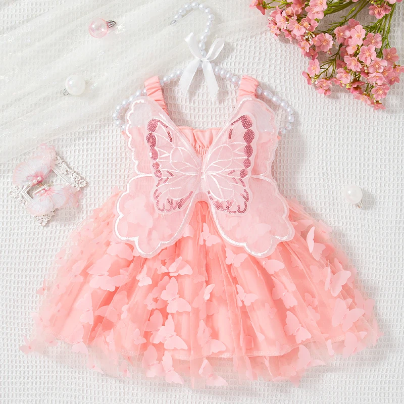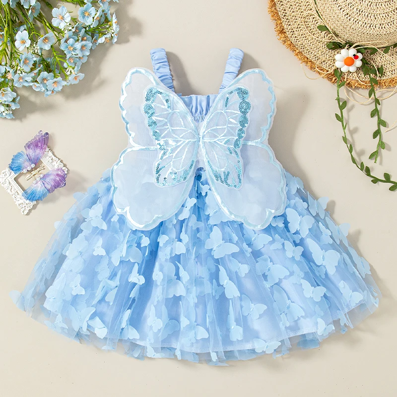 Girl Kid’s Dress Summer Butterfly Pattern Solid Color Halter Puffy Baby Girl Dress Cute Gorgeous Baby Clothes Girl