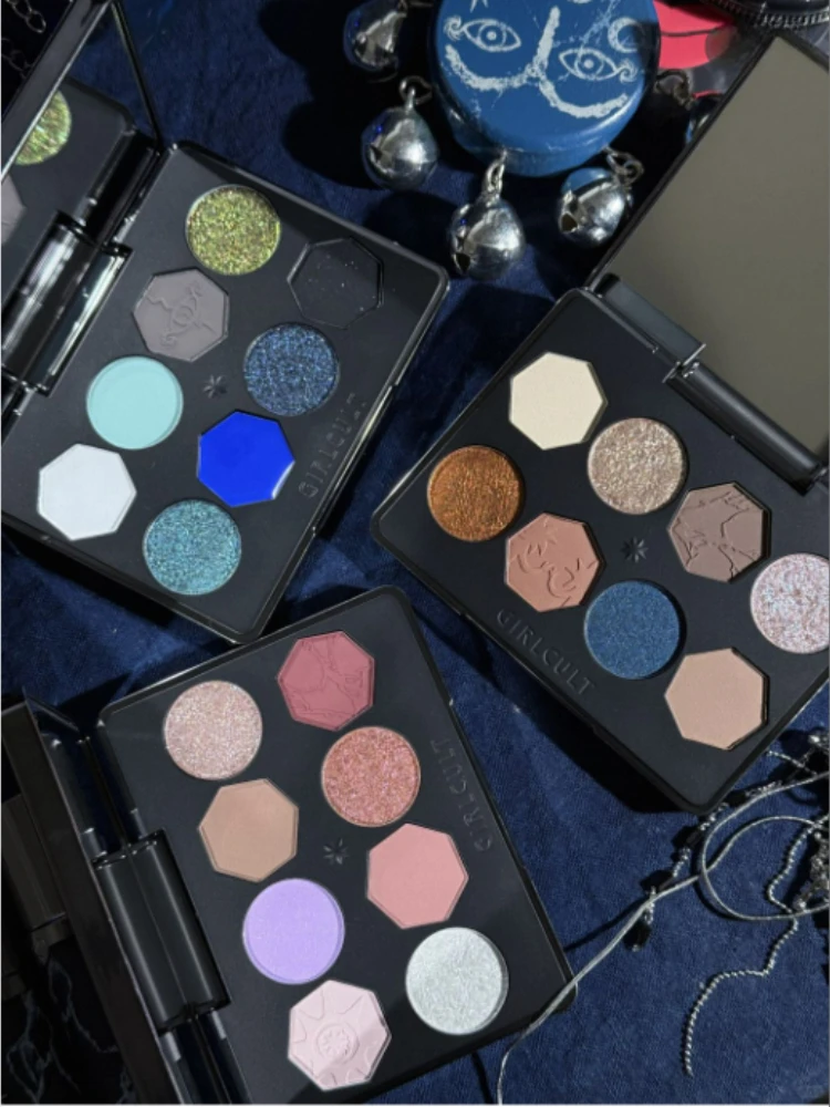 Girlcult Miao Witch Series 8 Color Eyeshadow Palette Blue Smokey Matte Highlighter Shimmer Glitter Palette Fun Eyes Makeup