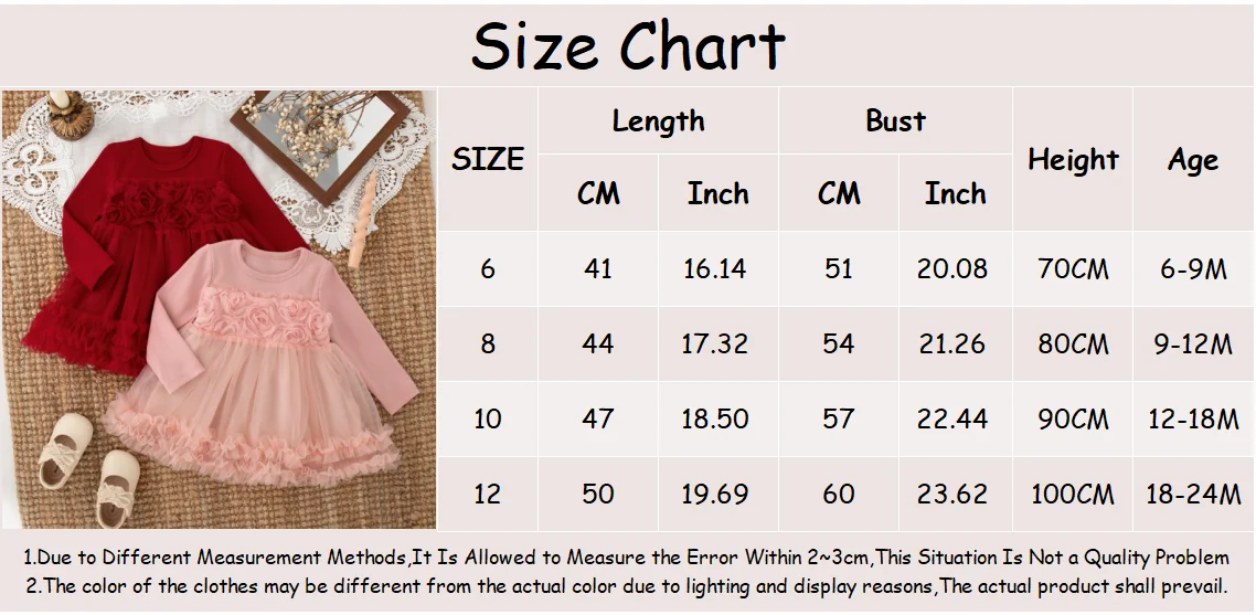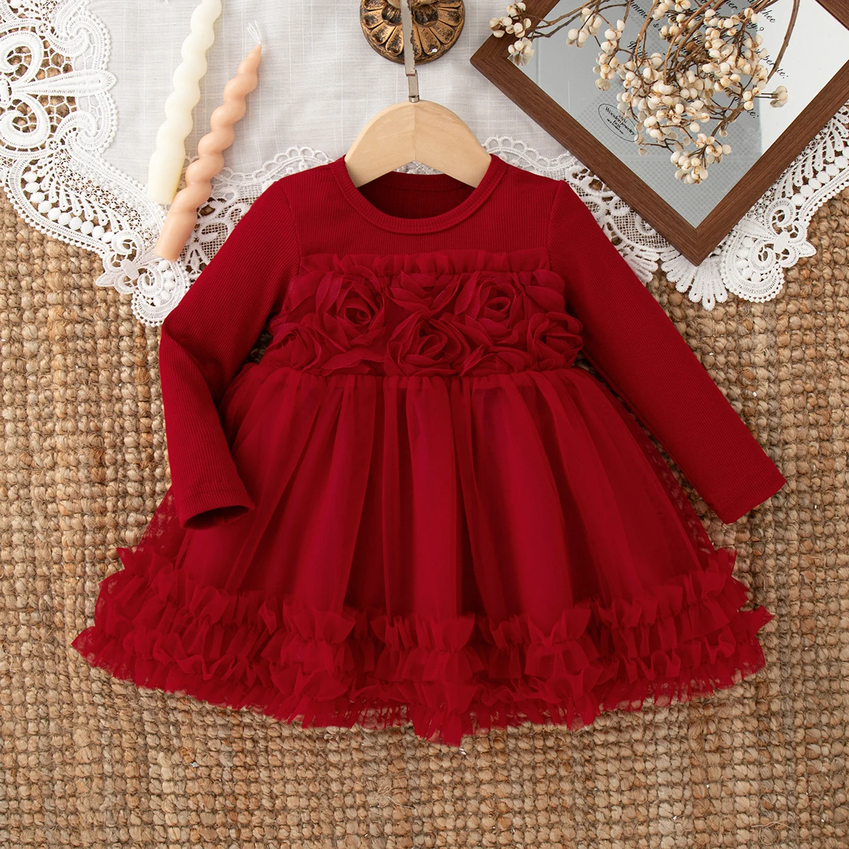 Girls’ Dresses Spring/Fall Solid-Color Floral Long-Sleeve Baby Girl Dresses Adorable First Birthday Baby Dresses Baby Girl Cloth