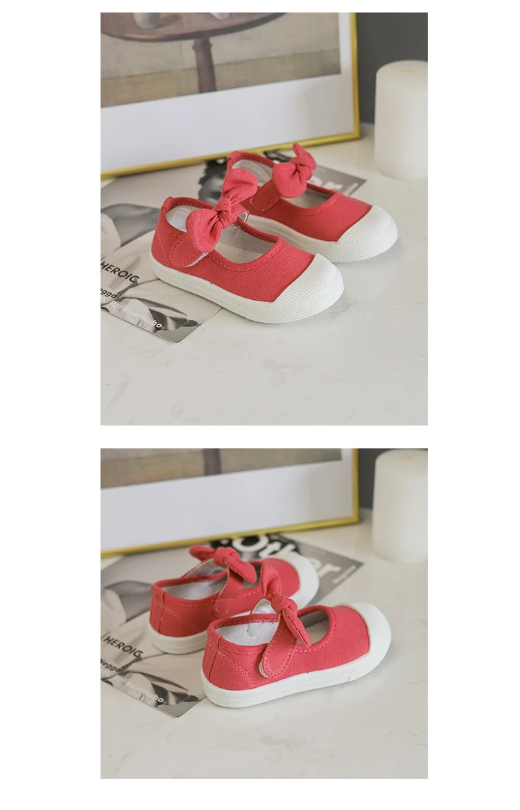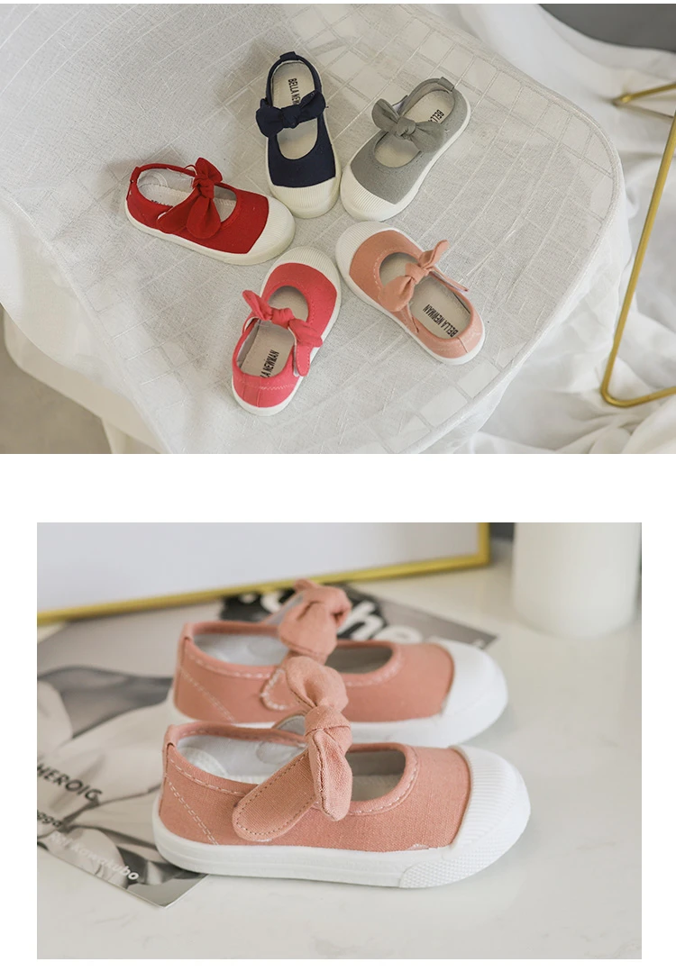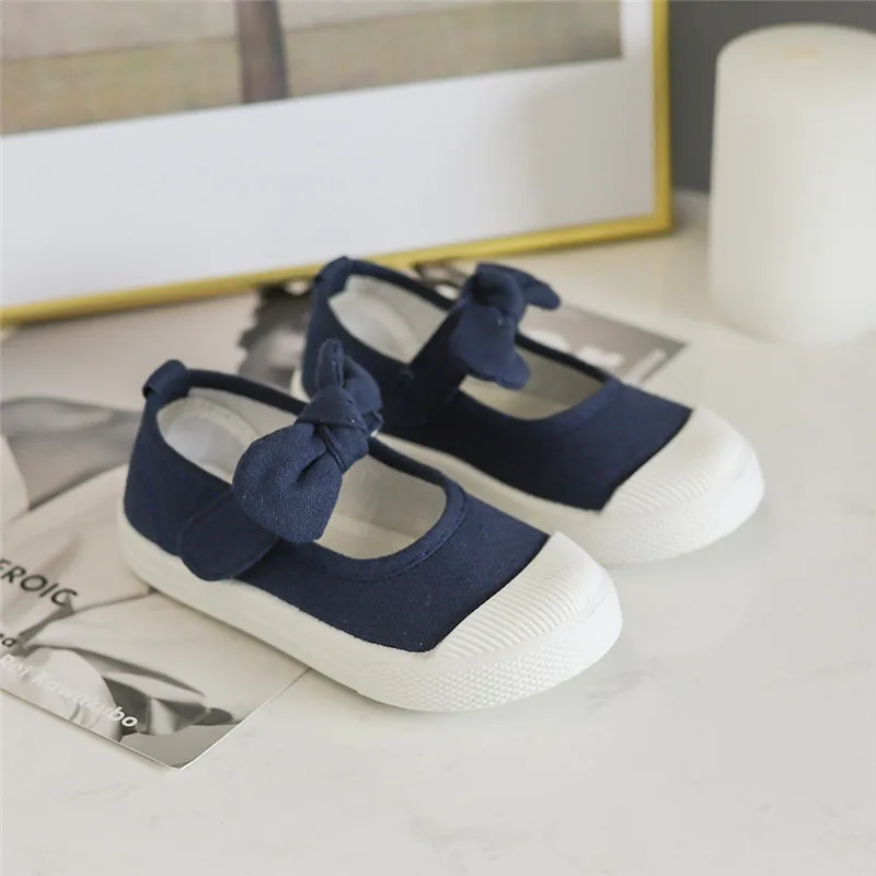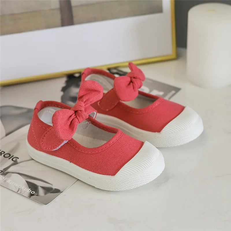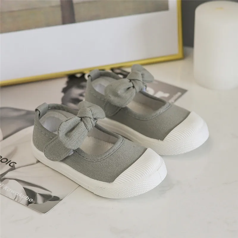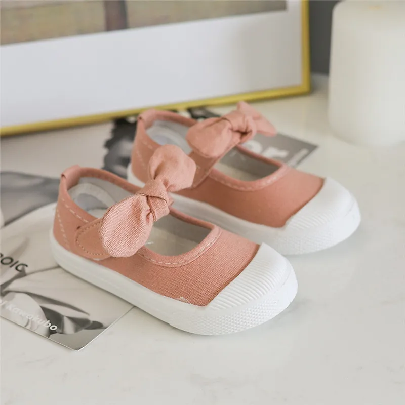 Girls Fashion Hook & Look Canvas Sneakers Children Shoes For Kids Flats Heels Casual Loafer Bow-knot Shoes For Sports