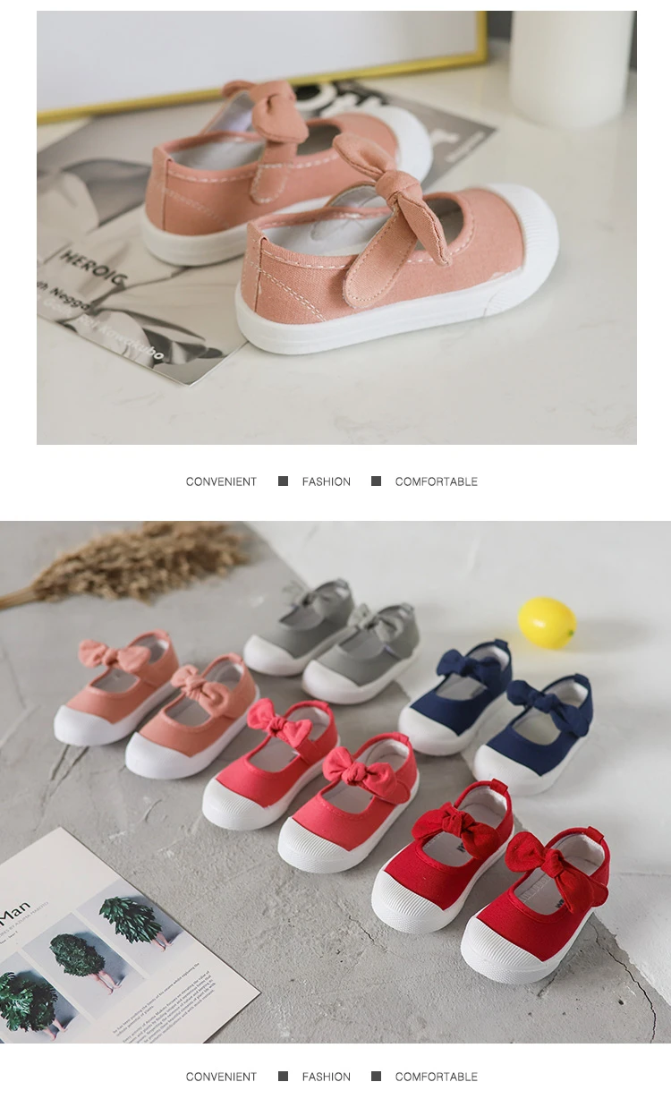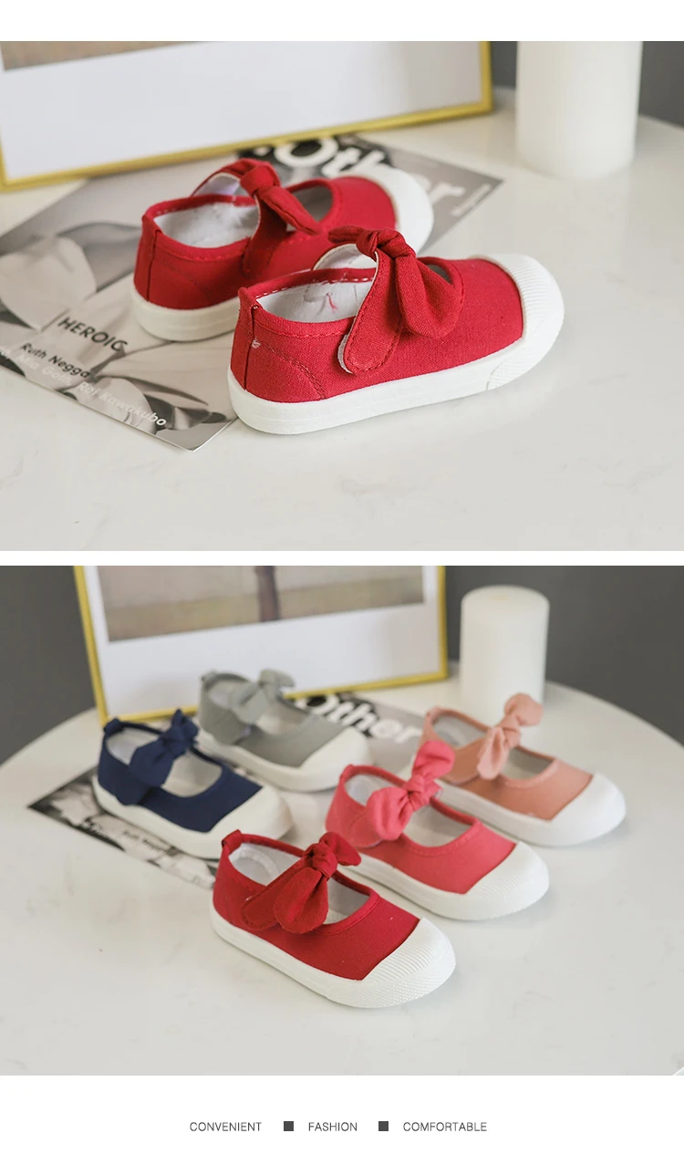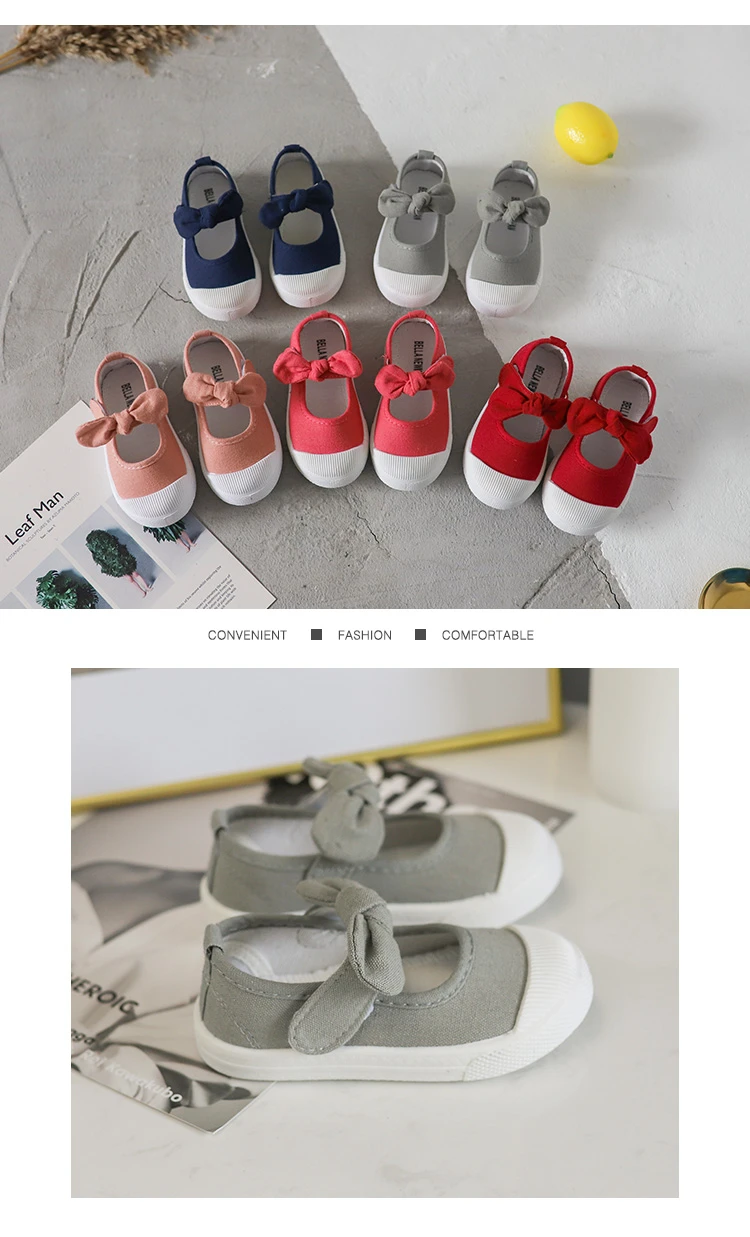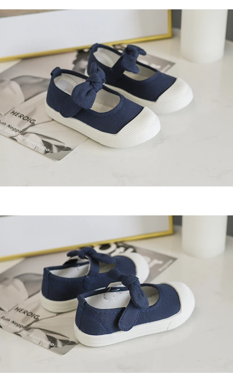 Girls Fashion Hook & Look Canvas Sneakers Children Shoes For Kids Flats Heels Casual Loafer Bow-knot Shoes For Sports