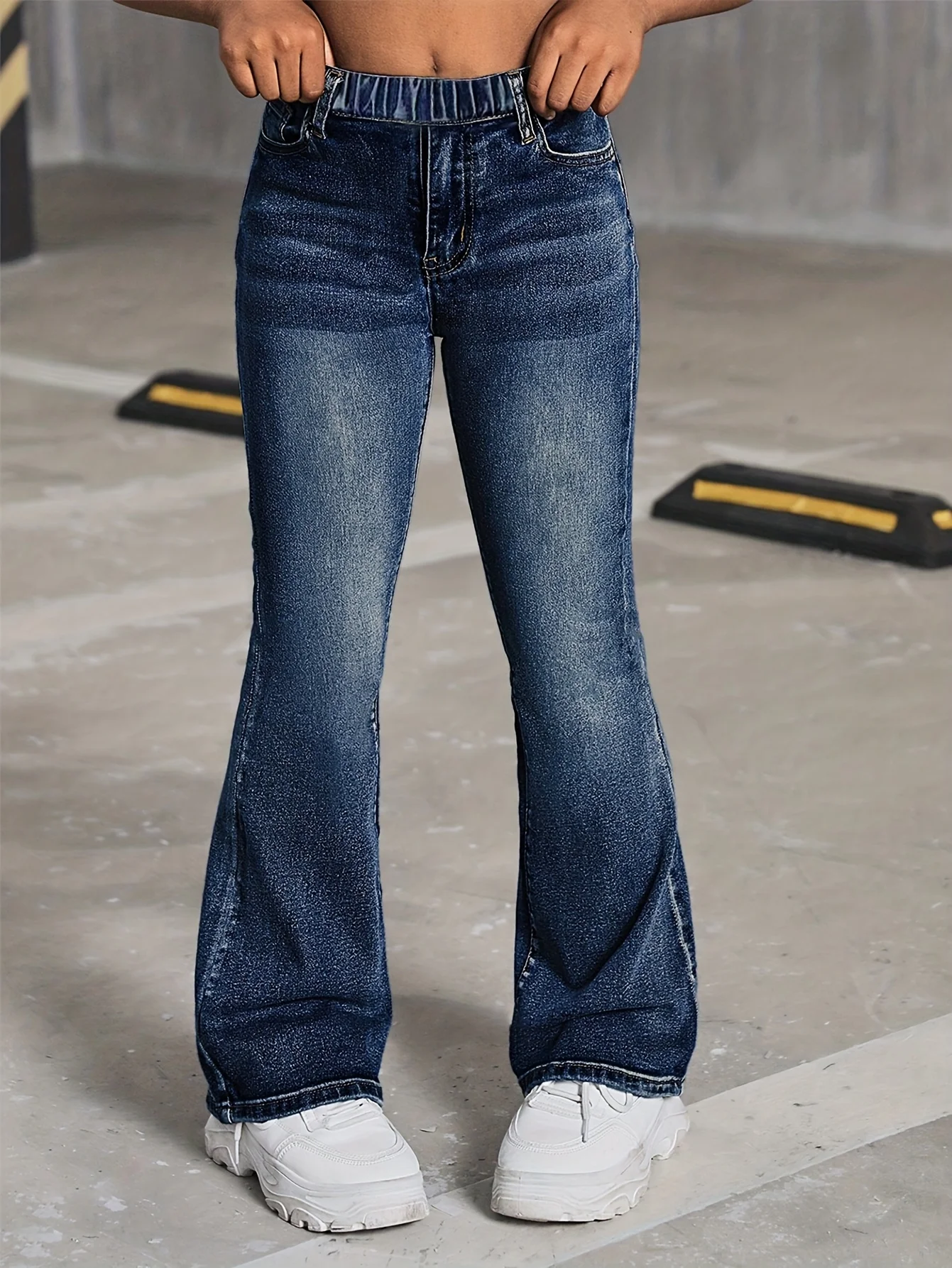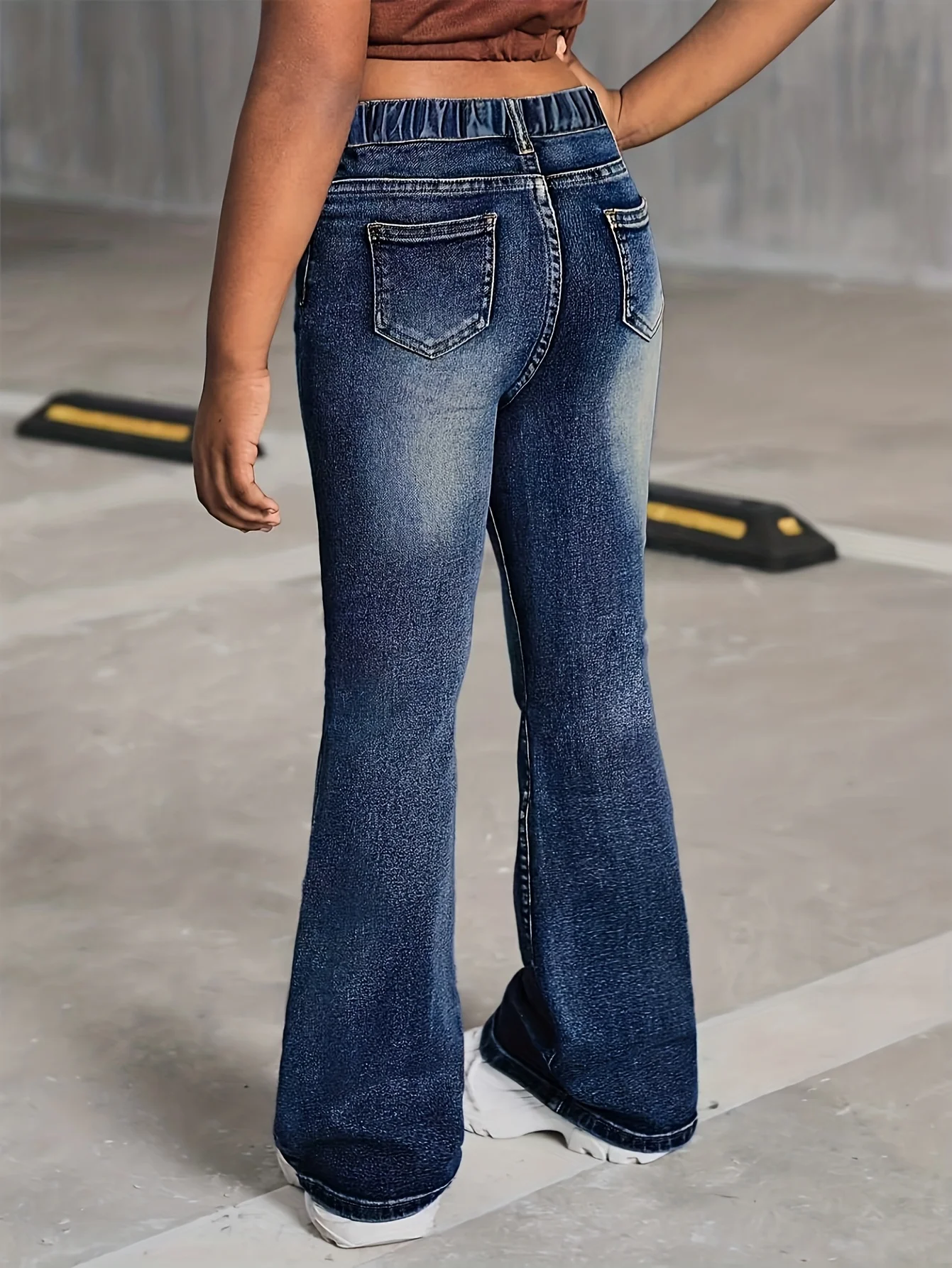Featuring an elastic waist, these jeans offer a comfortable fit for growing girls, ensuring a perfect match for all seasons.