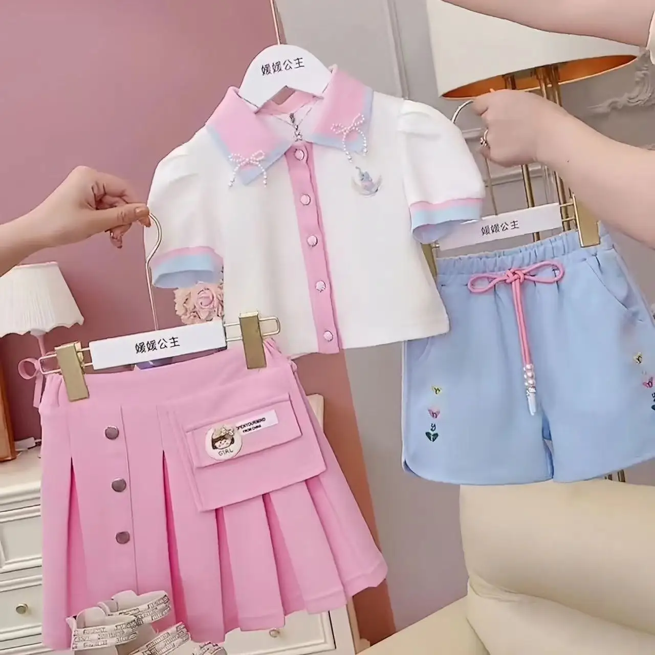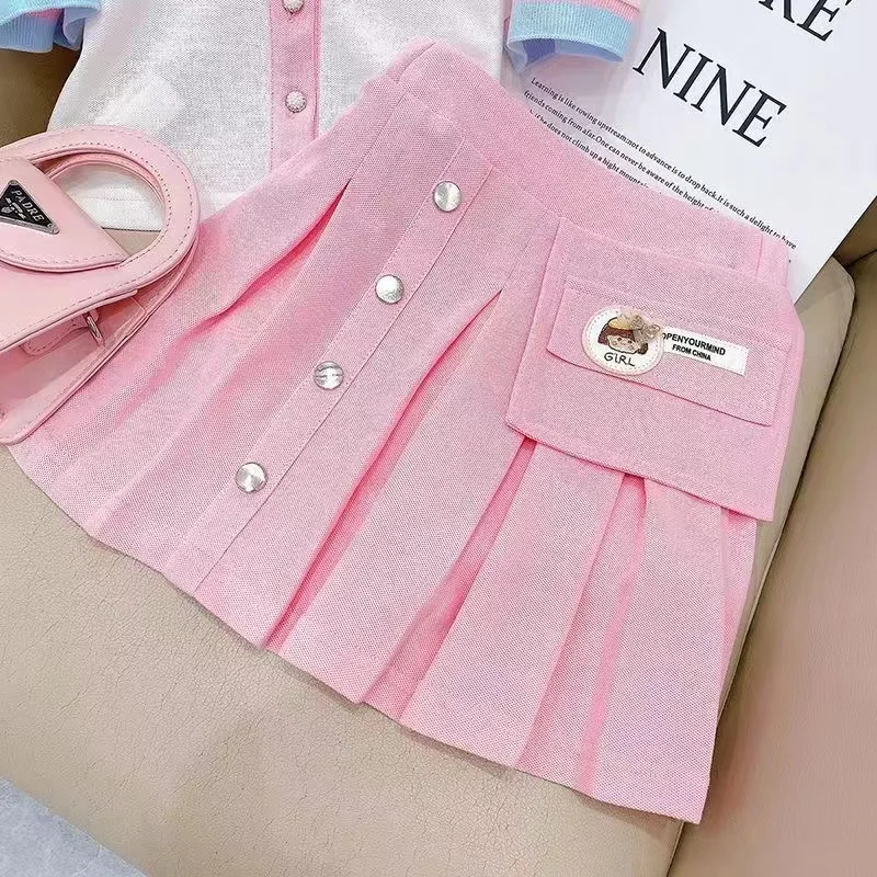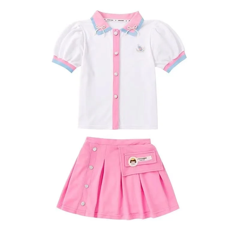 Be the first to review “Girls’ Small Fragrance Set 2024 New Polo Collar Spliced Summer Short Sleeve Pleated Skirt Two Piece Set Trendy”