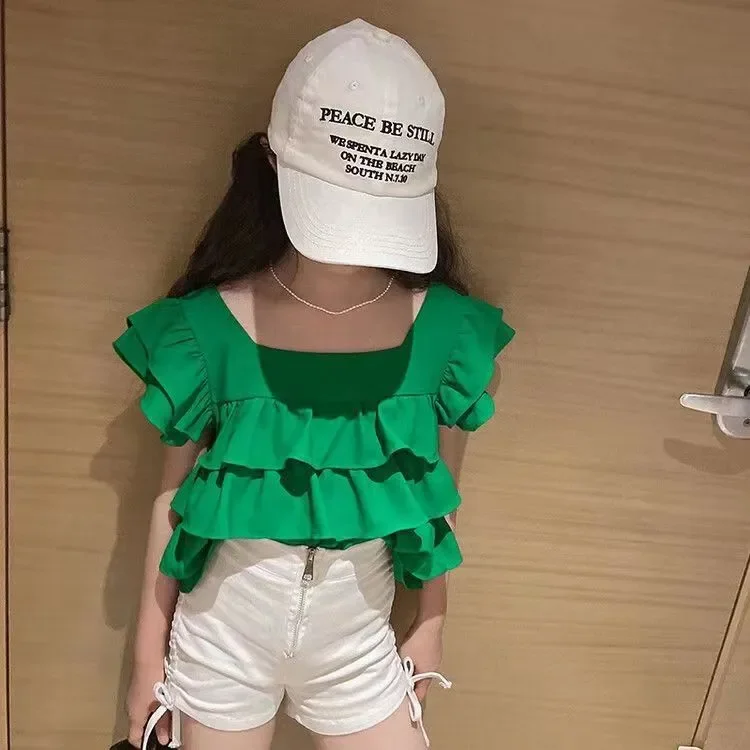 Girls Tops Vest Summer New White Ruffles Sleeveless Short Shirt Teens Kids Clothes 12 13 14 Years Children Beach Hooliday Blouse