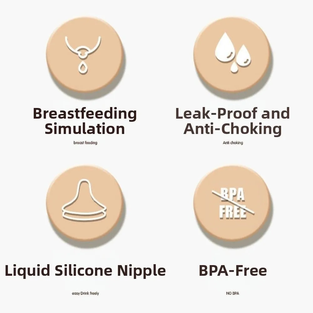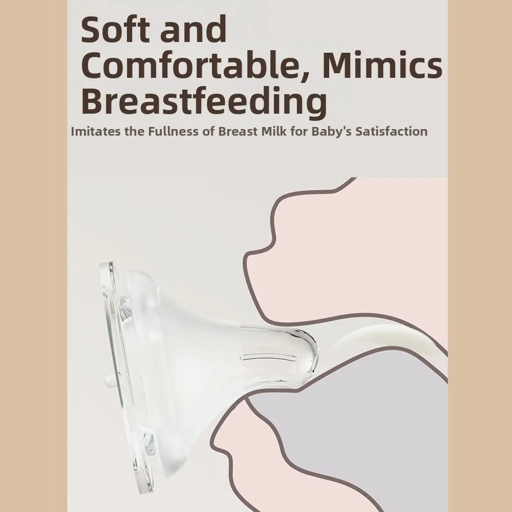 The pacifier is made of food-grade silicone material, which is super soft and stretchable. It is anti-colic and sucks the pacifier in one breath, allowing the baby to suck milk in one breath without inhaling too much air to prevent bloating.