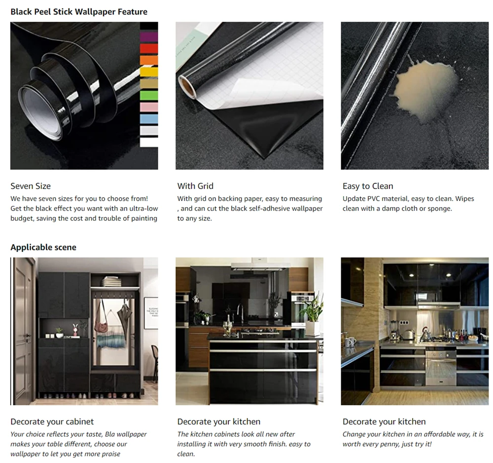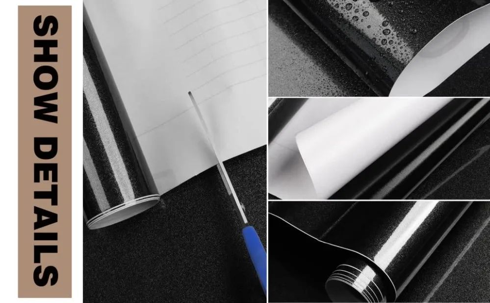 Glossy Black Vinyl Wallpaper for Walls In Waterproof Wall Stickers Bathroom Table Kitchen Adhesive Sticker for Furniture Decor