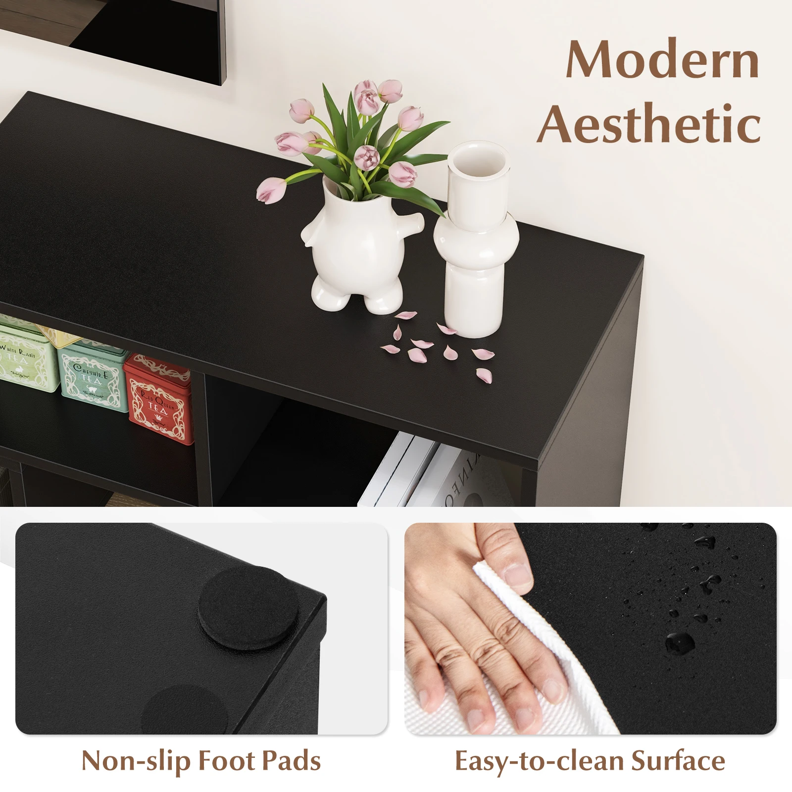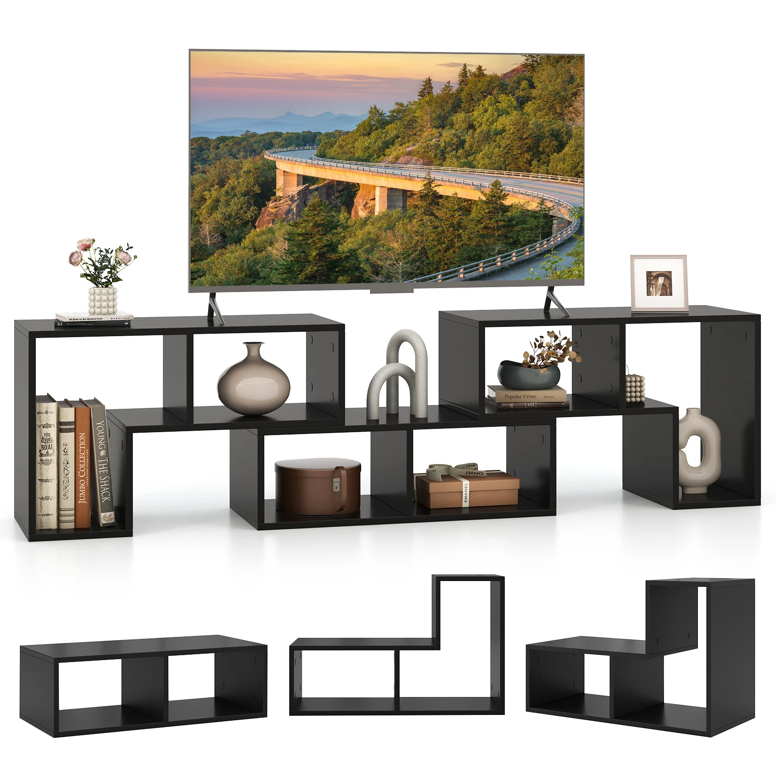 Wanna add extra storage space to keep your home clean and organized? Wanna an elegant TV stand or a console table to match your modern home style? This 3 PCS console TV stand definitely satisfies your needs! It is composed of 2 L-shaped shelves and a rectangular shelf, offering ample space for a television, video player, books, CDs, vases and potted plants. You can combine it freely as you like, making it a TV stand, a bookshelf or an ordinary storage cabinet. Plus, made of premium board, the TV stand can withstand large capacity. And different combination style means different load-bearing capacity. In addition, there are many non-slip pads to enhance stability and steadiness. A simple and stylish appearance adds some character to your home style! You can put it in the living room, bedroom, living room, bedroom, entryway, or hallway. If you are looking for such a product, do not hesitate to buy it!