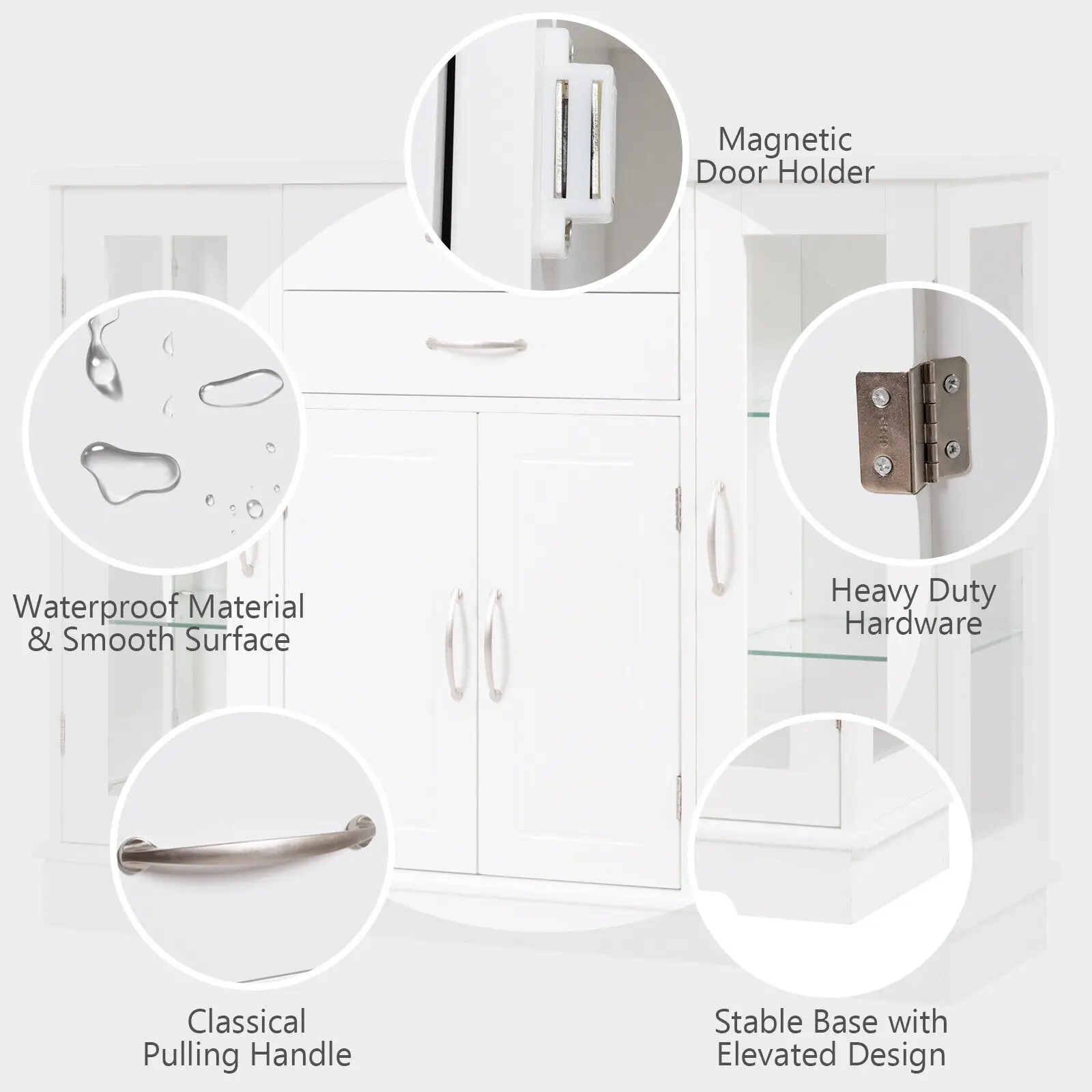 Versatile storage space with drawers, glass door cabinets and double door cabinets With 3-position adjustable shelves for a flexible storage option