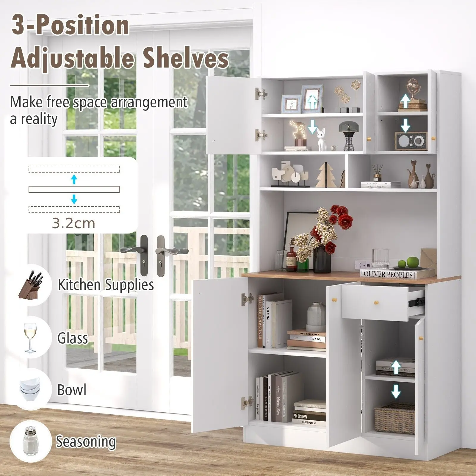 3-position adjustable shelves make free space arrangement a reality