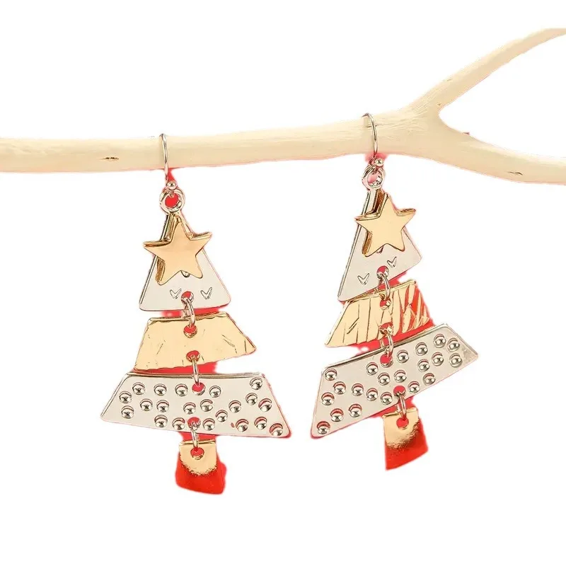 Gold and Silver Color Christmas Tree Earrings Metal Pendant Hoop Drop Earring For Women Ear Hook Fashion Party Accessories Gifts