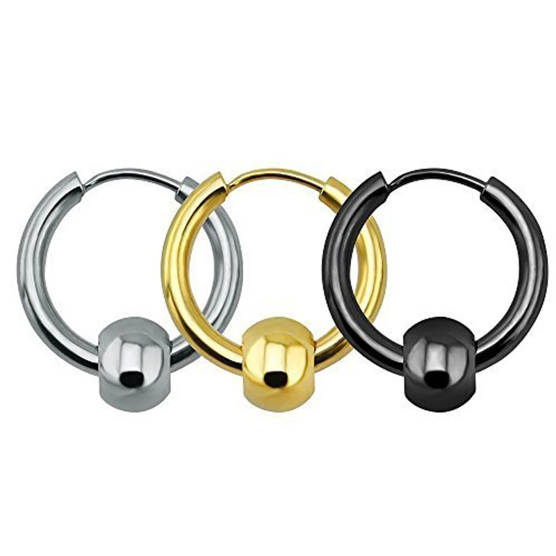 Gold-Color IP Plating 316 Stainless Steel Circular 8 10 12 14 16mm Ball Hoop Earrings No Fade Allergy Free Classical Brief Style