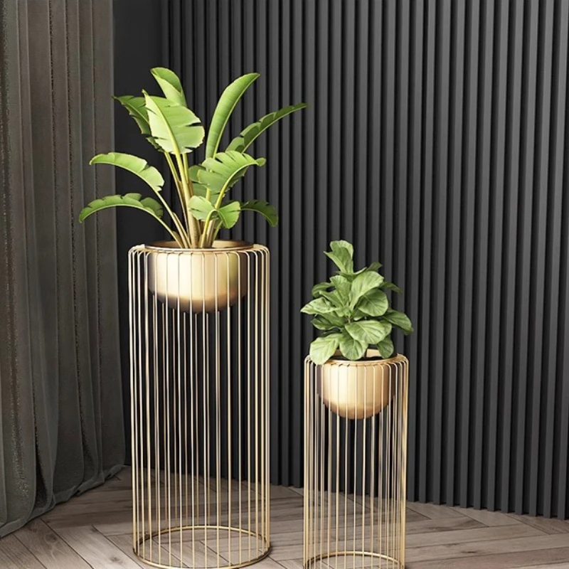 The Gold Iron Flower Rack boasts an elegant design, perfect for adding a touch of sophistication to any living room or balcony.