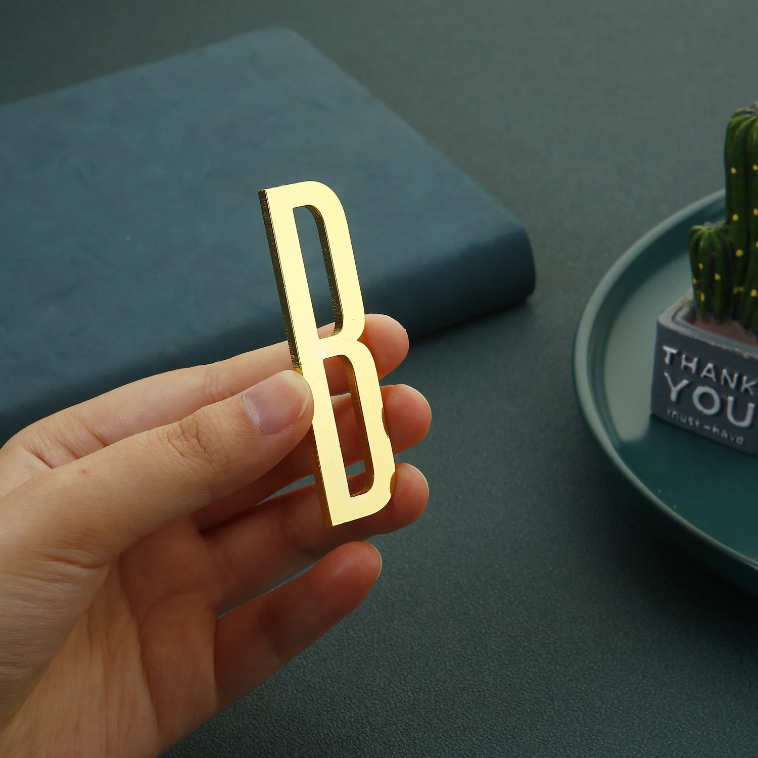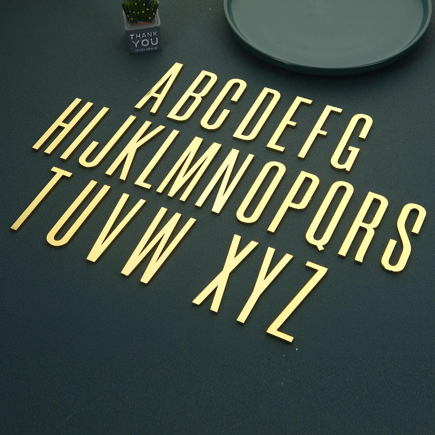 Golden Self Adhesive House Number Metal English Alphabet Letters for Apartment Room Door Plate Table Mailbox Number Stickers 7cm