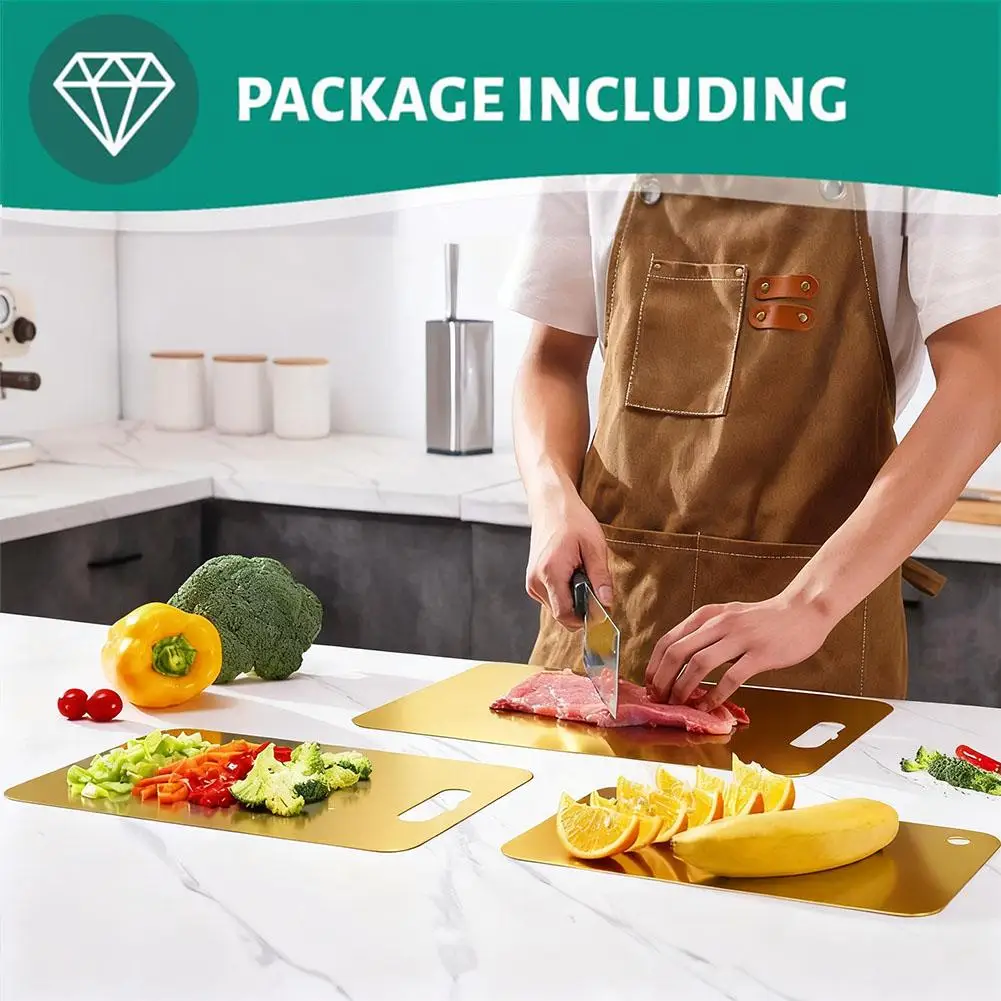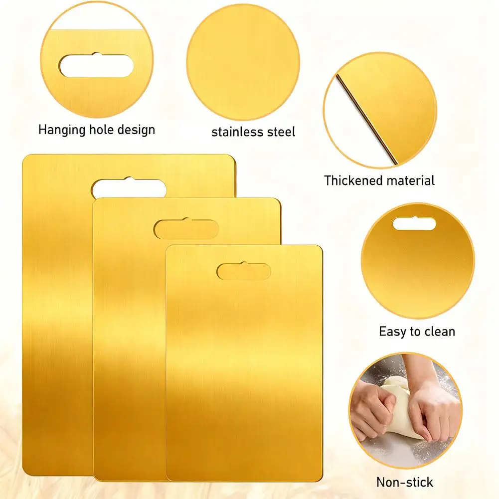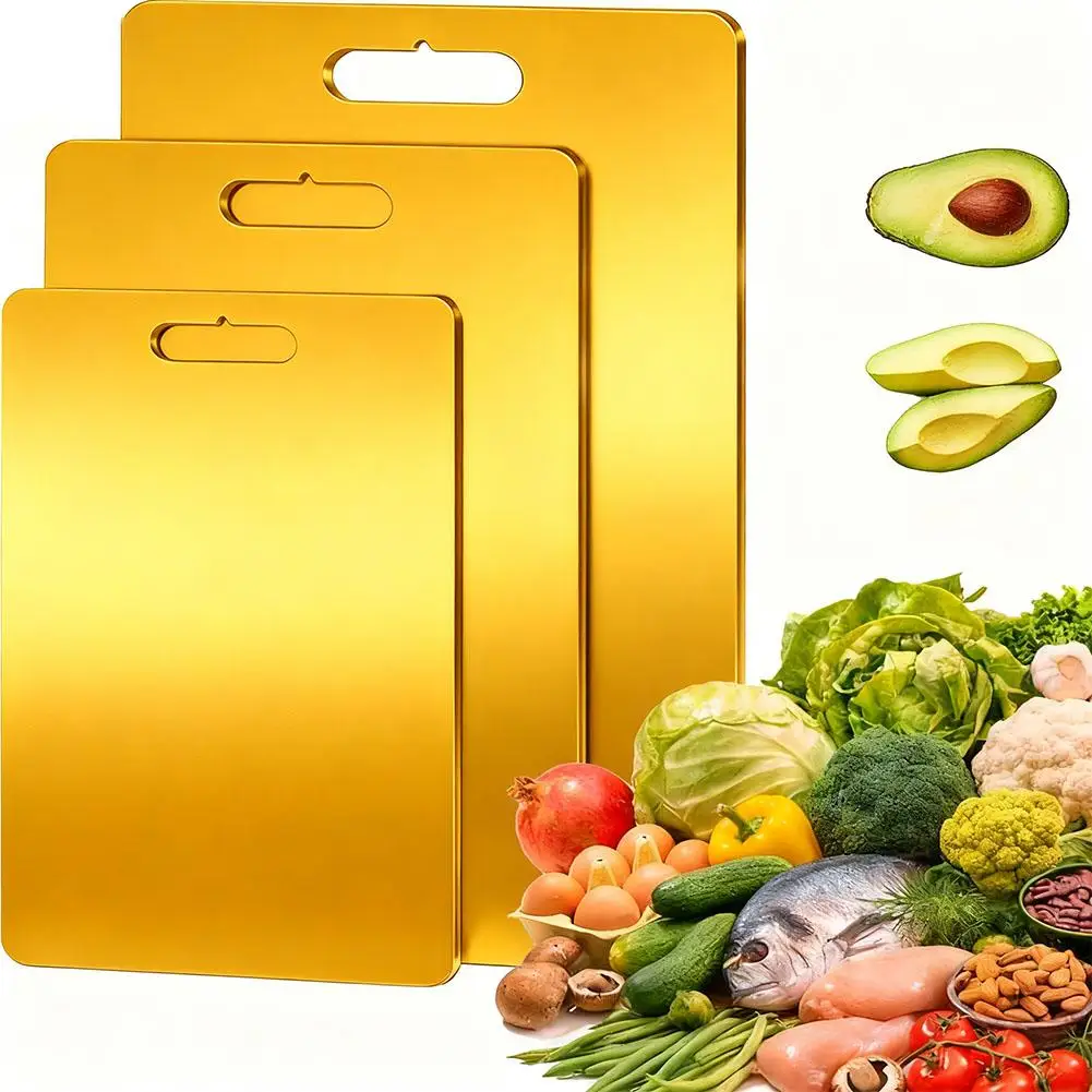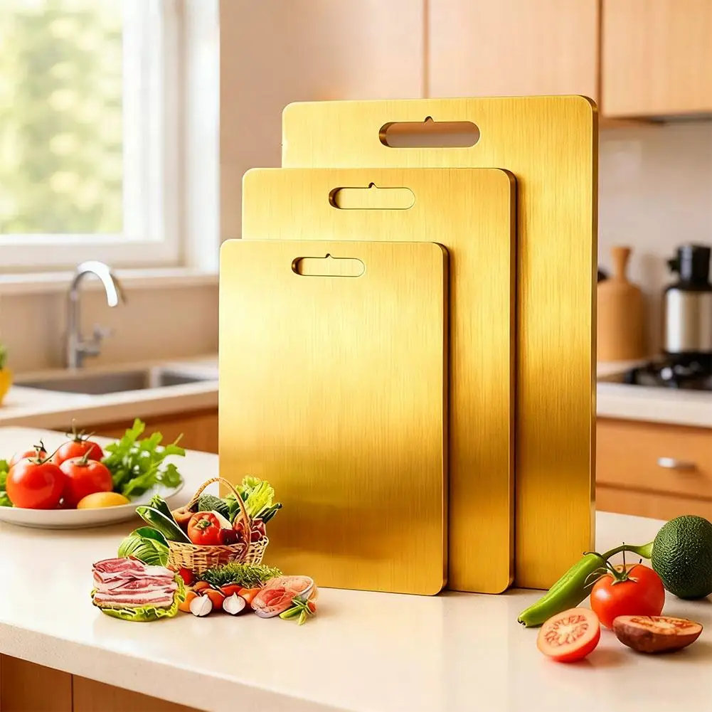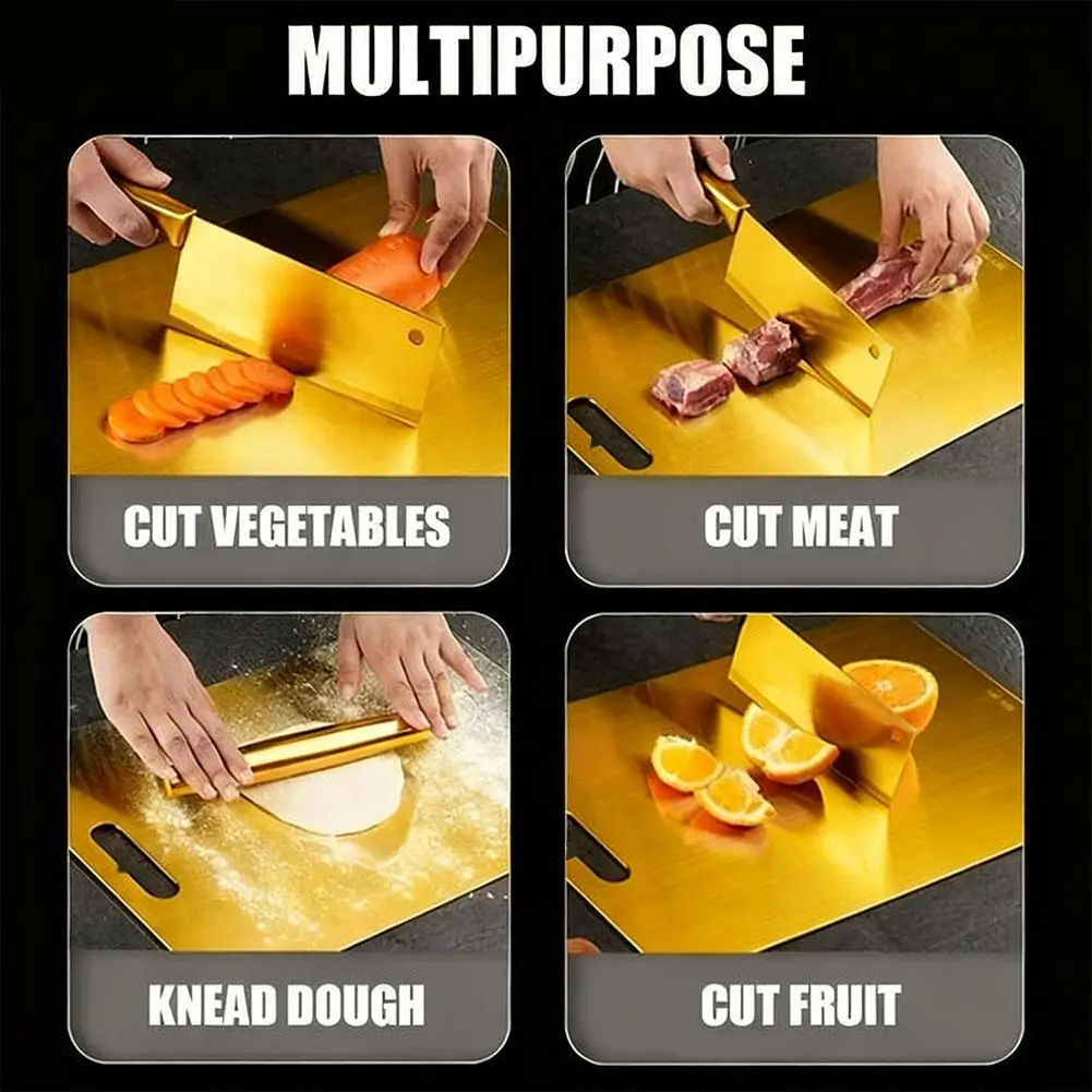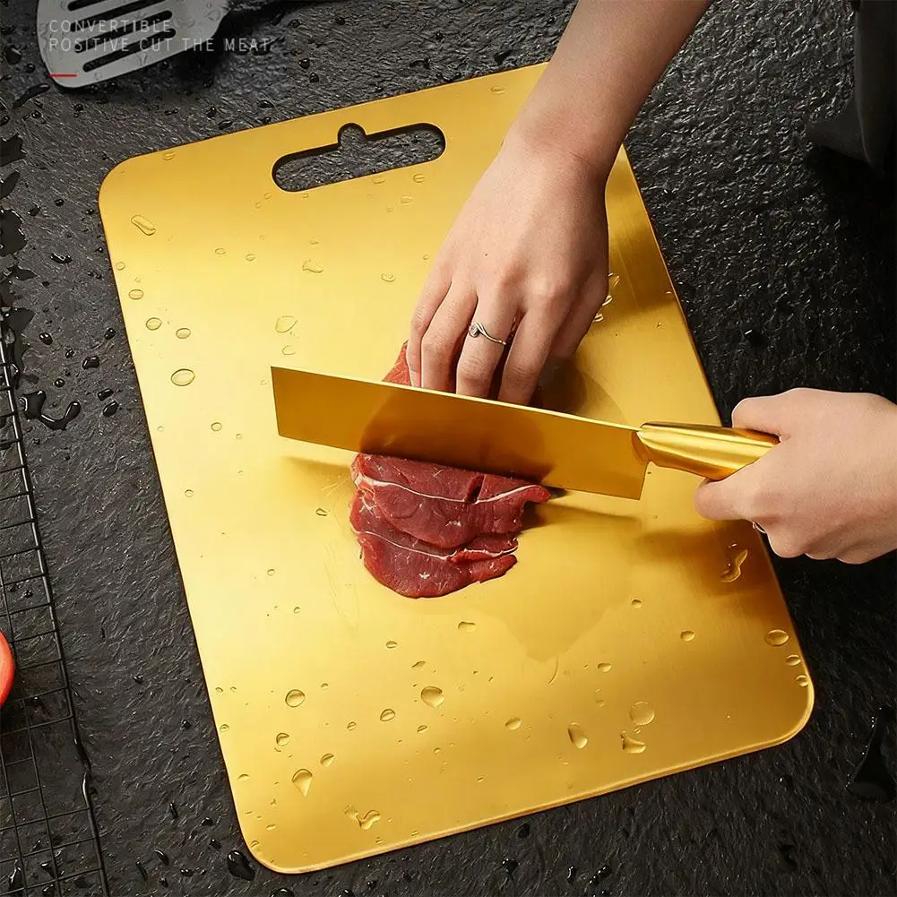 1 review for Golden Stainless Steel Chopping Board Double Sided Thickened Kitchen Kneading Dough Board Antimicrobial Cutting Block