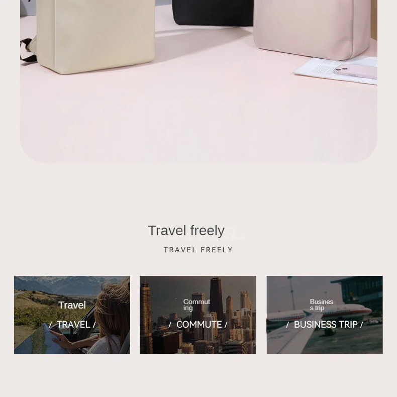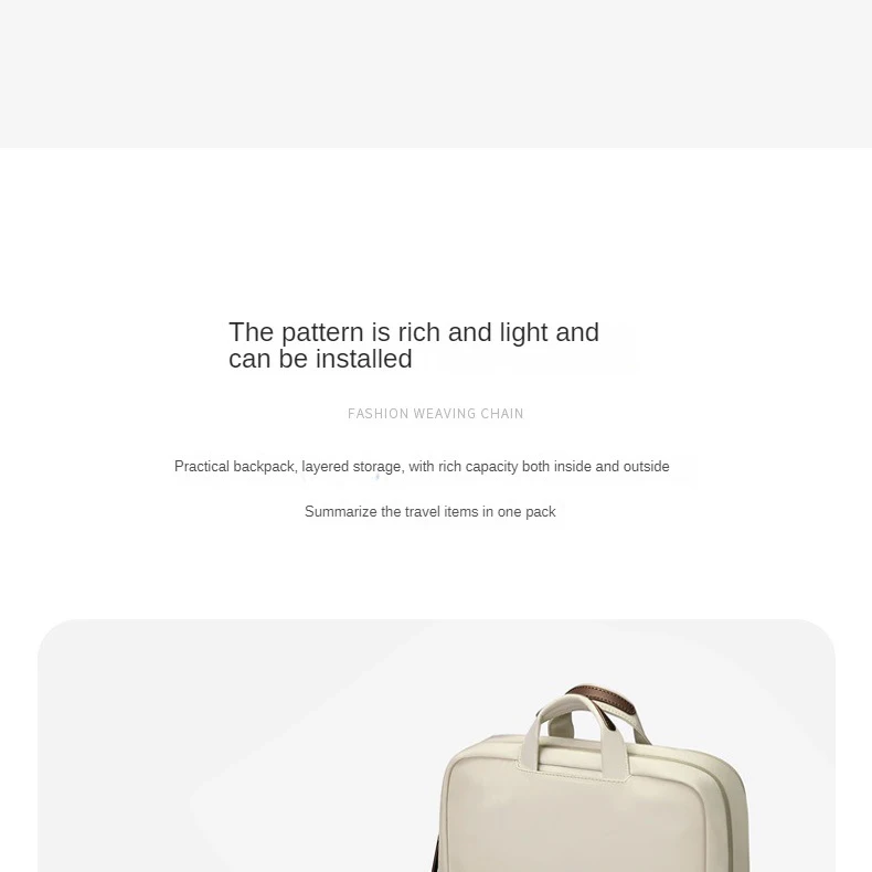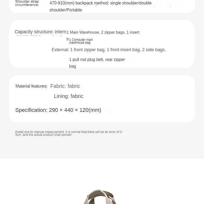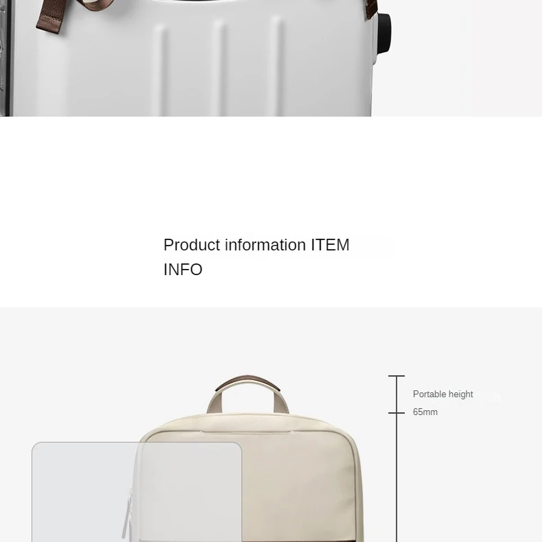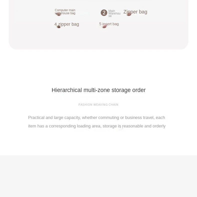 External: 1 front zipper pocket, 1 front wrist insert pocket, 2 side pockets, 1 independent computer main compartment, 1 rear zipper pocket, and 1 rear pull rod strap.