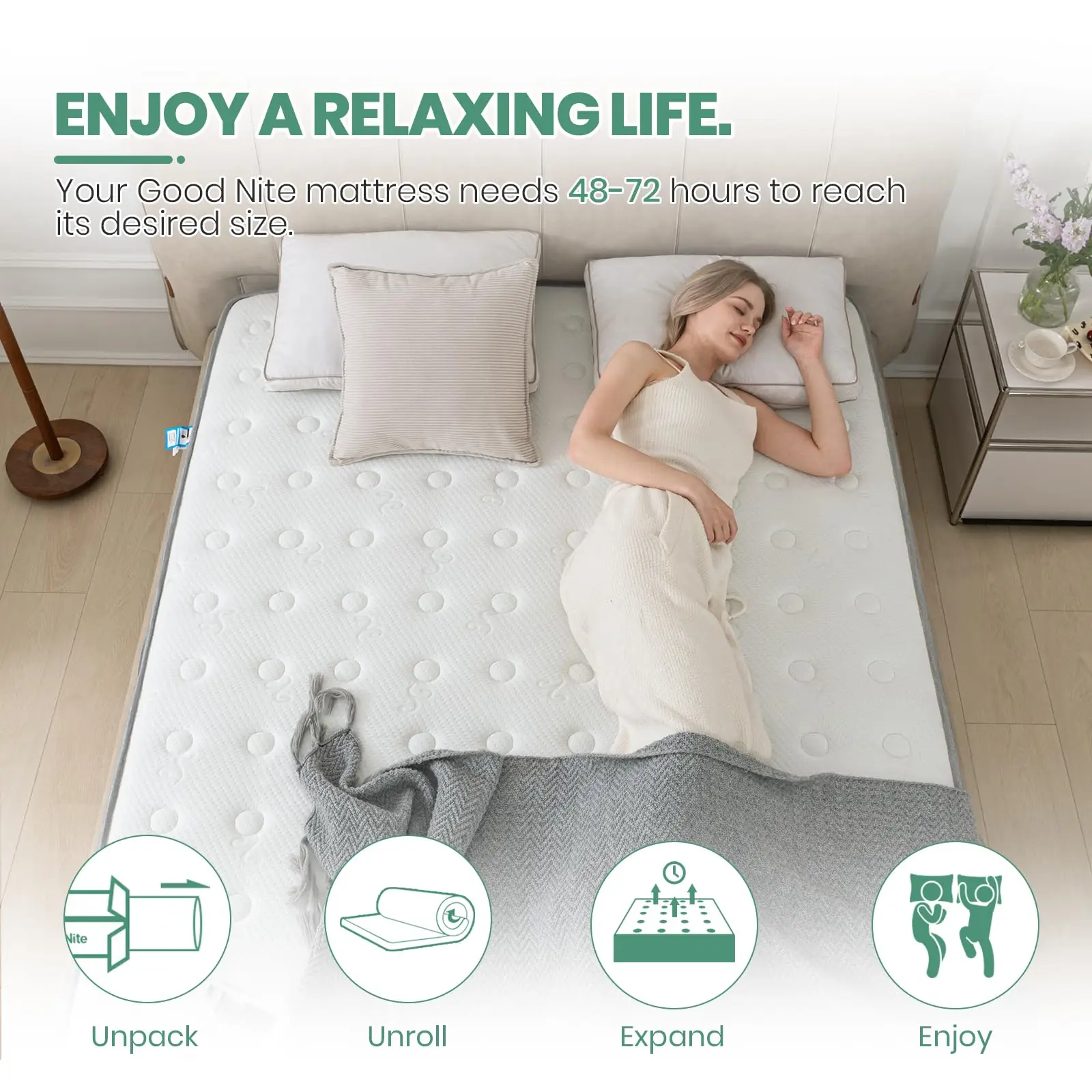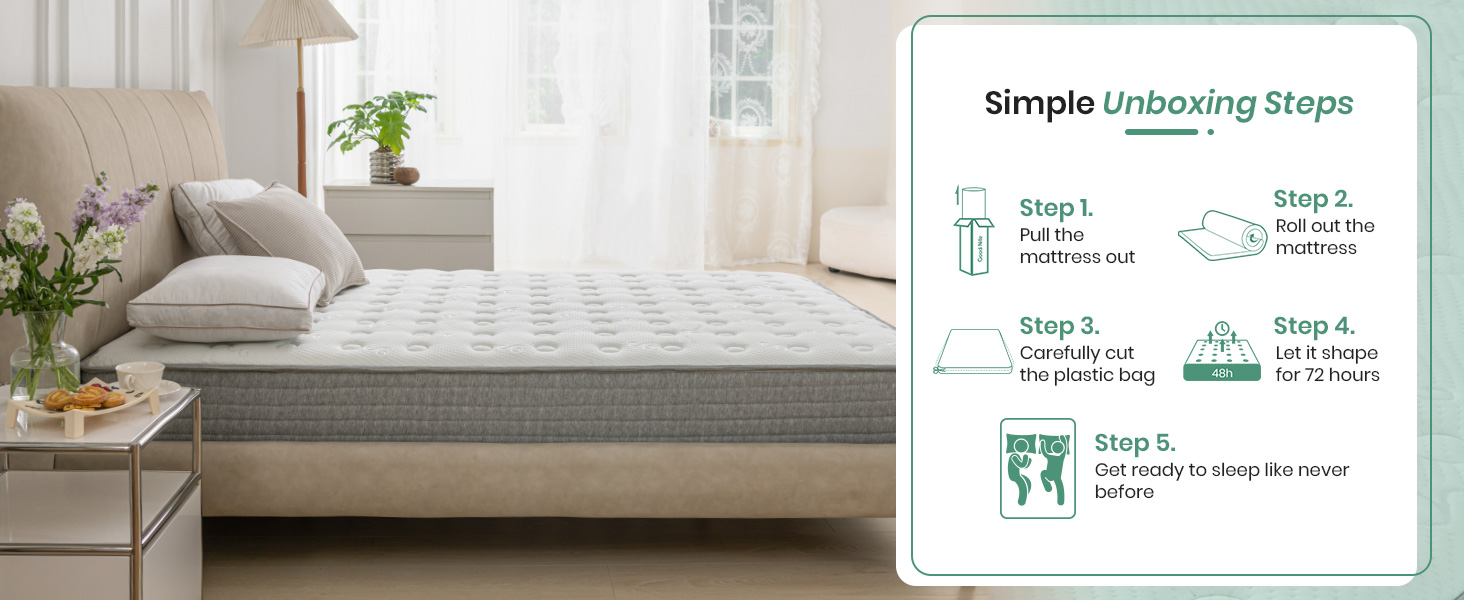 Convenient Mattress in a Box – Vacuum-packed and rolled for easy delivery, this mattress expands to its original shape within 48-72 hours after unboxing. Effortless setup for a premium sleeping experience.