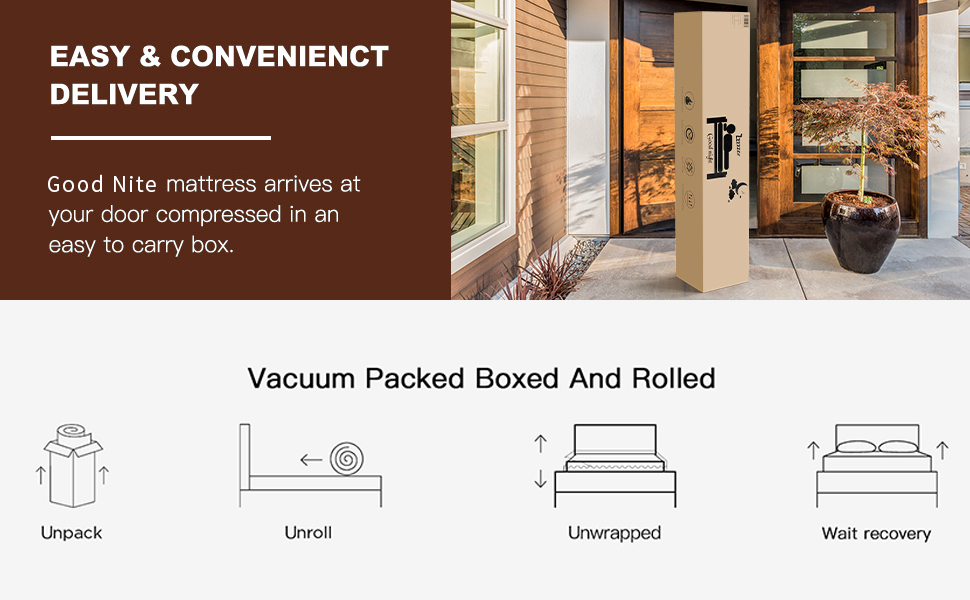 The Good Nite Pocket Sprung Memory Foam Hybrid Mattress arrives compressed and boxed for easy delivery. Simply unbox, unroll, and allow up to 72 hours for the mattress to fully expand and air out, ready to provide you with unparalleled comfort and support.