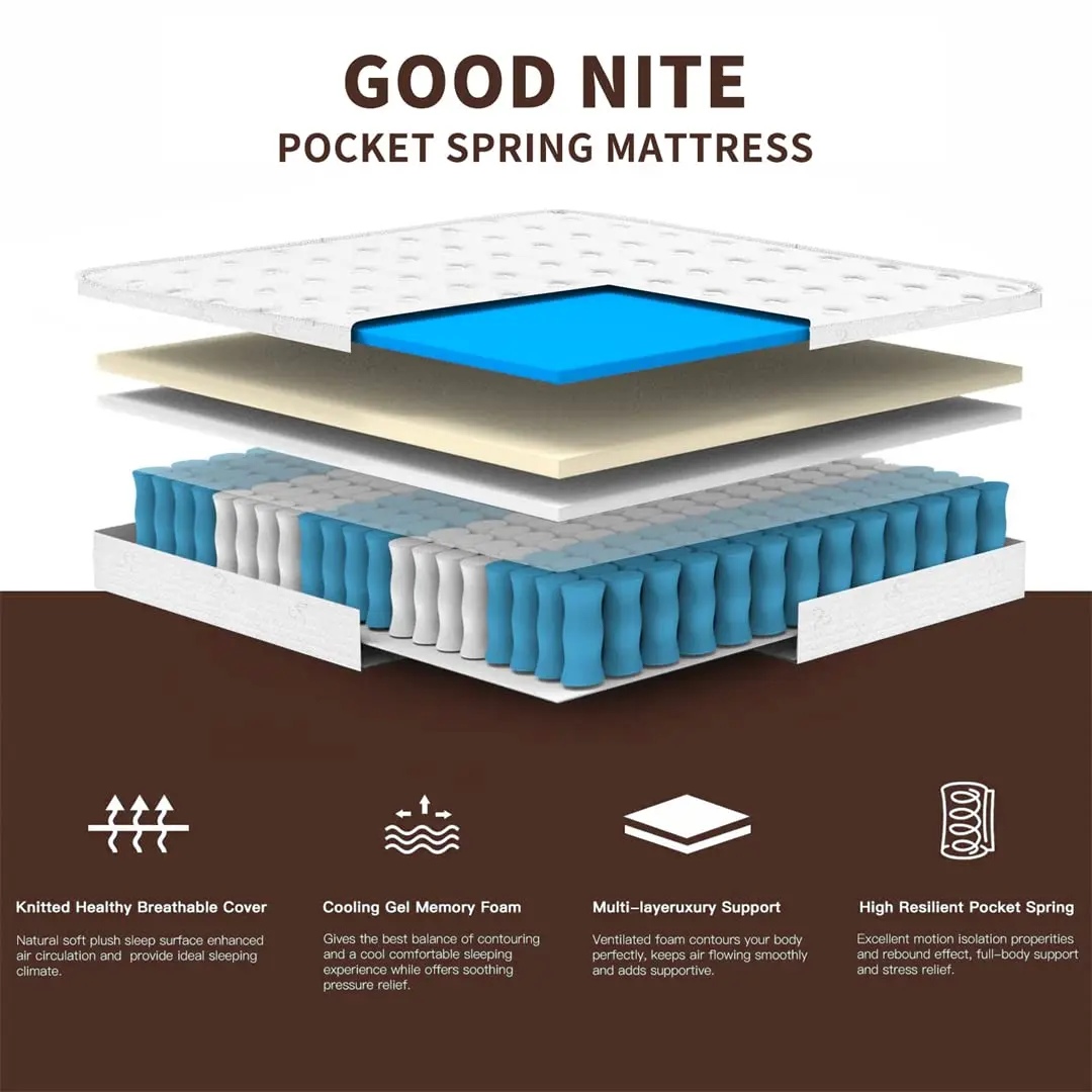 Experience the perfect balance of comfort and support with the Good Nite Pocketed Springs Mattress. This innovative hybrid design combines the body-contouring comfort of memory foam with the responsive support of individual pocketed springs, ensuring a restful and rejuvenating night’s sleep.