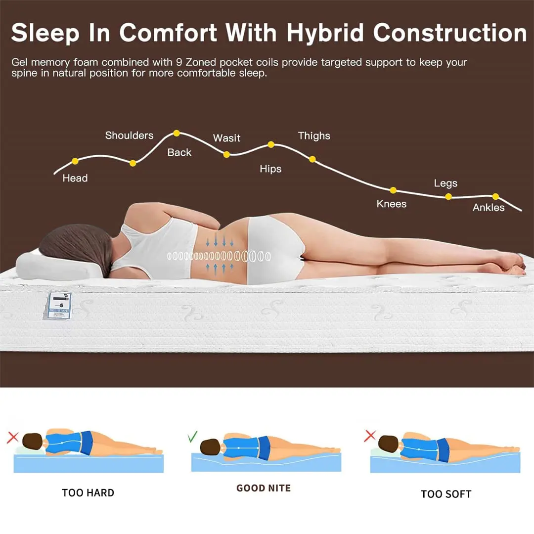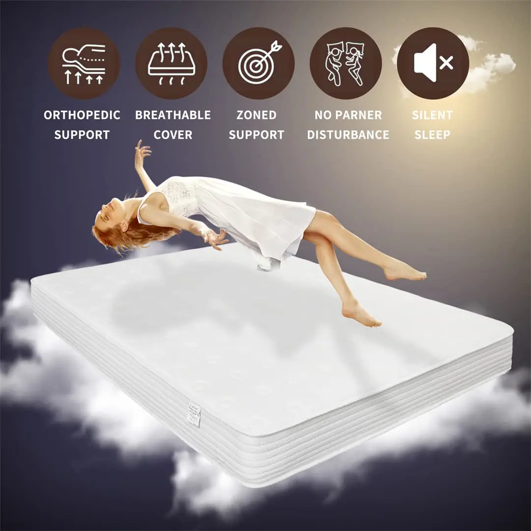 This premium hybrid mattress covered a breathable knit fabric top, interier designed with multiple foam layers and individually wrapped innerspring, provides the ideal comfort and maximum support. Excellent durability with super good cost performance. Elaborately designed to offer you and your family easy sleep!