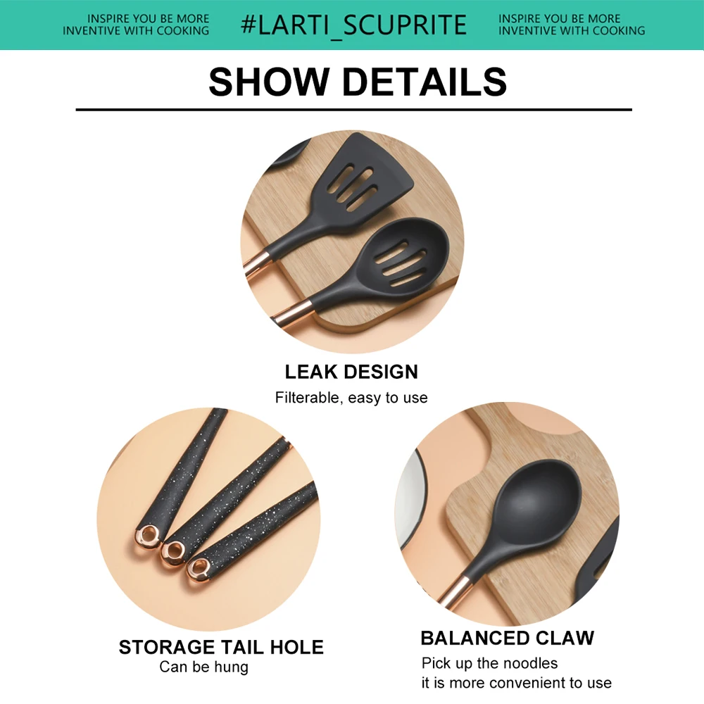 2. High temperature resistance, no damage to the pan, safe and healthy, easy to stir fry at the front end, non-stick pan, strong practicability. High-quality stainless steel rod connection design, strong and durable, more powerful to use, easy to stir fry. Non-slip clamping position, ergonomics, anti-slip clamping position is set on the edge of the handle, the grip is more comfortable, beautiful and practical, and it is convenient for the scoop to jam the edge of the worm and easy to wash.
