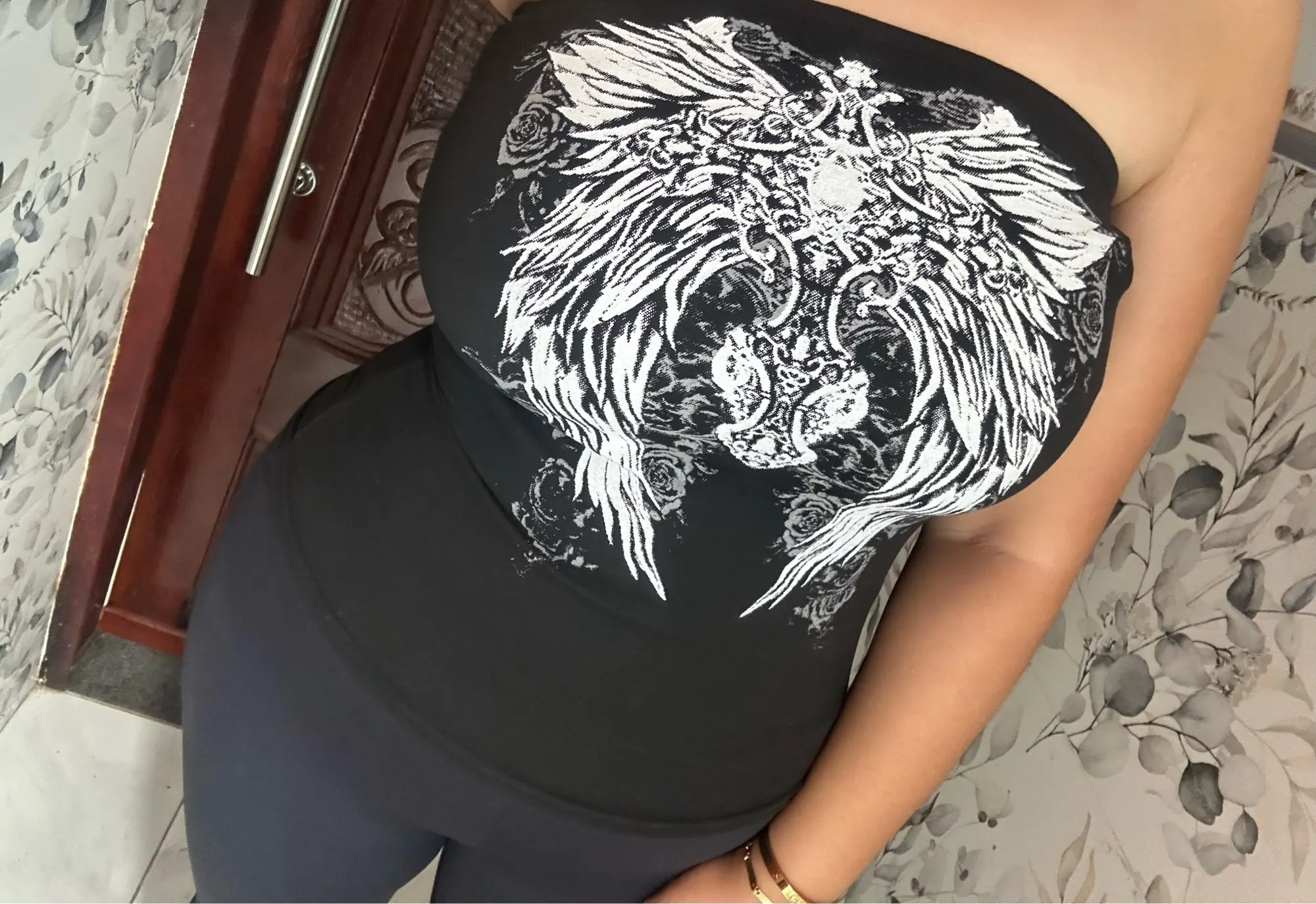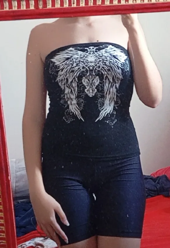 5 reviews for Gothic Print Black Strapless Tube Top Women Skinny Cropped Summer Casual Chic Graphic Tee Y2K Streetwear Basic Vest
