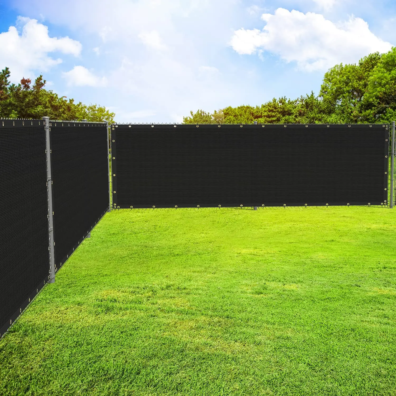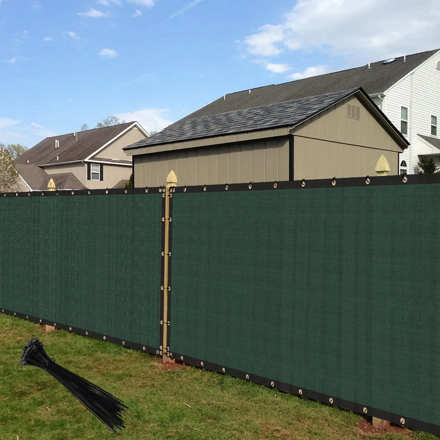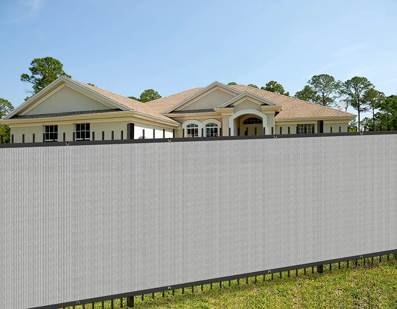 Easy to install: Use zip ties to fasten the grommets to the fence in each side. Our fence screen is equipped with denser grommets and straps to keep the fence closer to your fence.