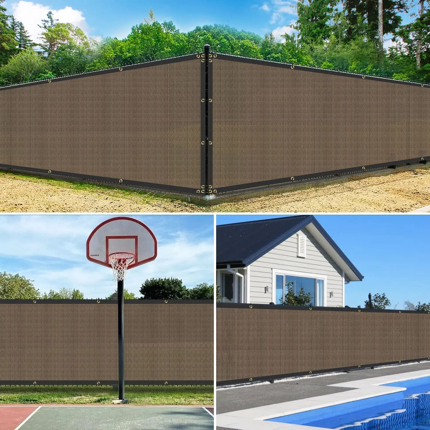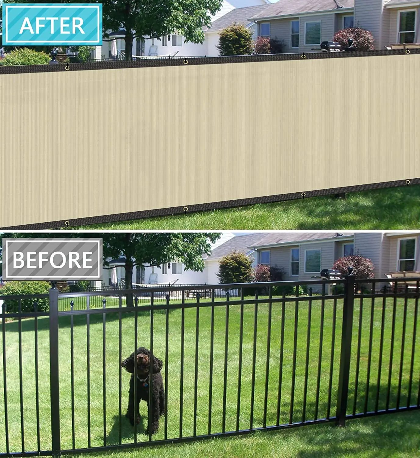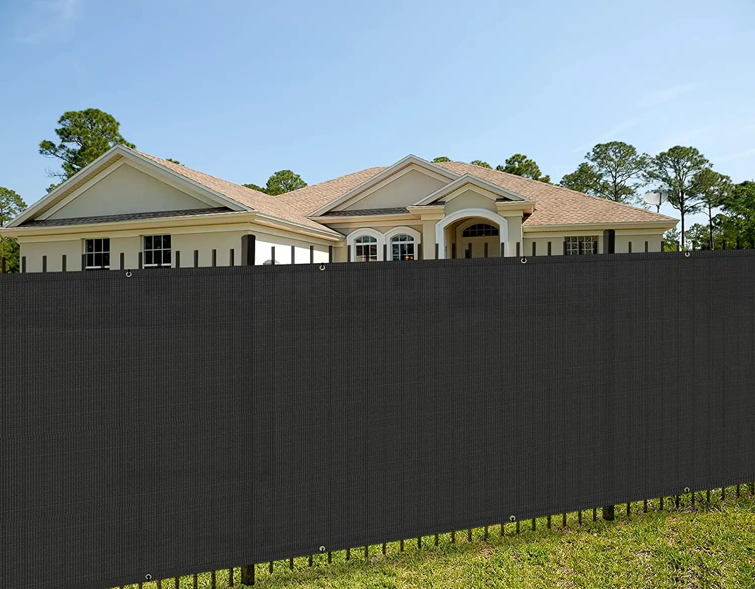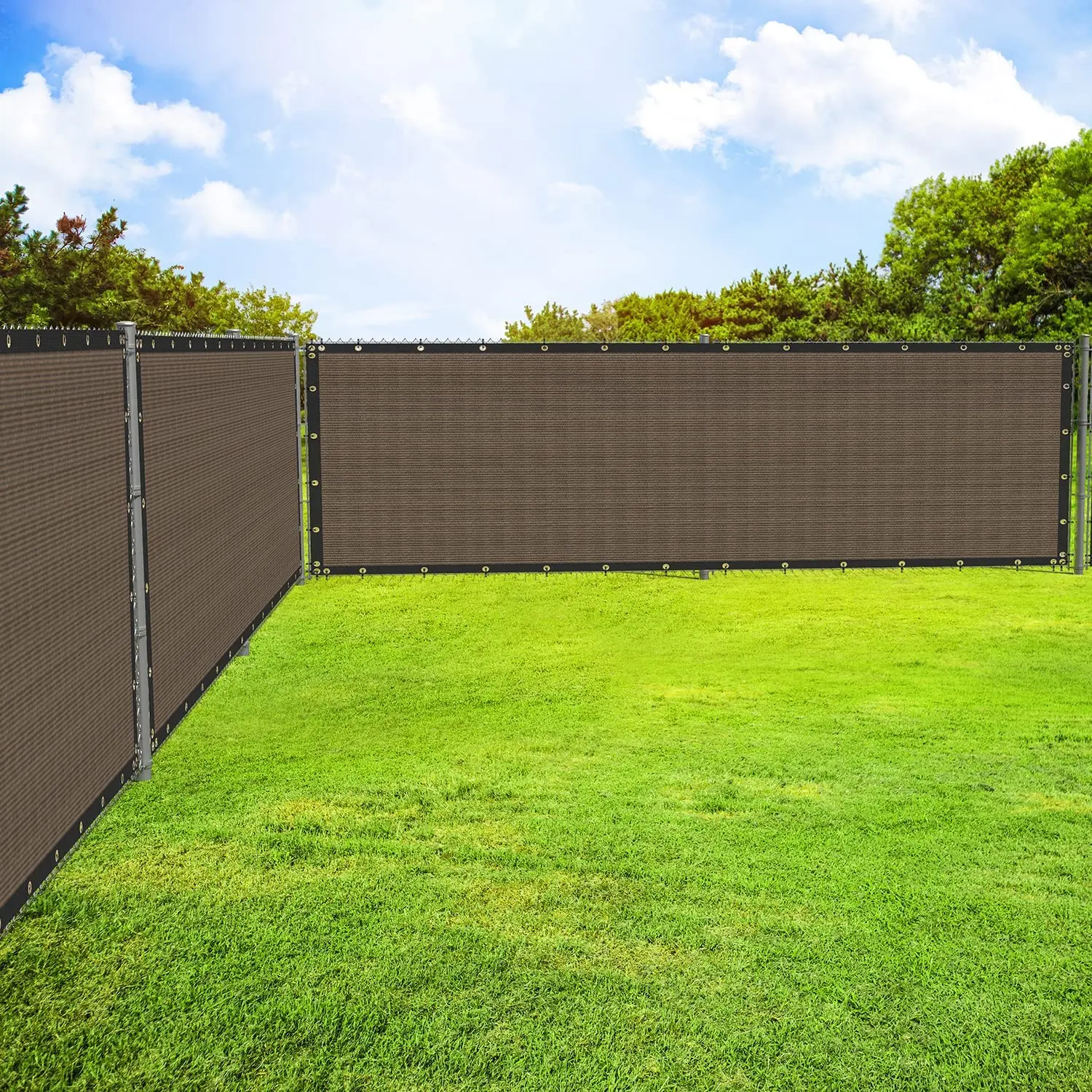 Easy to install: Use zip ties to fasten the grommets to the fence in each side. Our fence screen is equipped with denser grommets and straps to keep the fence closer to your fence.