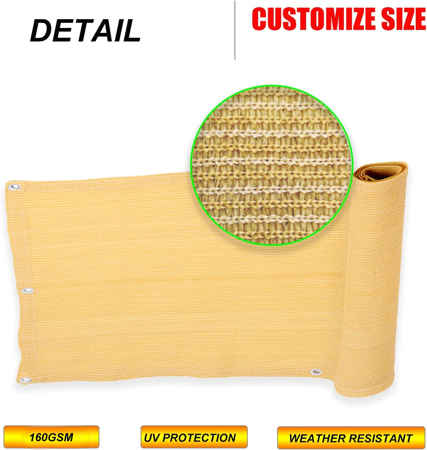 Qualitiy: Made with 100% new high density polyethylene (HDPE 160 GSM) material,not recycled materials, more healthy and safe. Allow breeze and light pass through for better comfort space. Qualitiy solid fabric can 90% privacy blockage to meet your requirement.